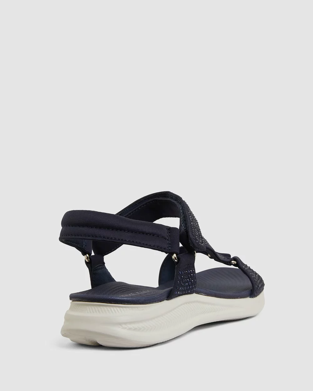 – Adjustable ankle fastening – Moulded foot bed with in built arch support – Slightly elevated back sole