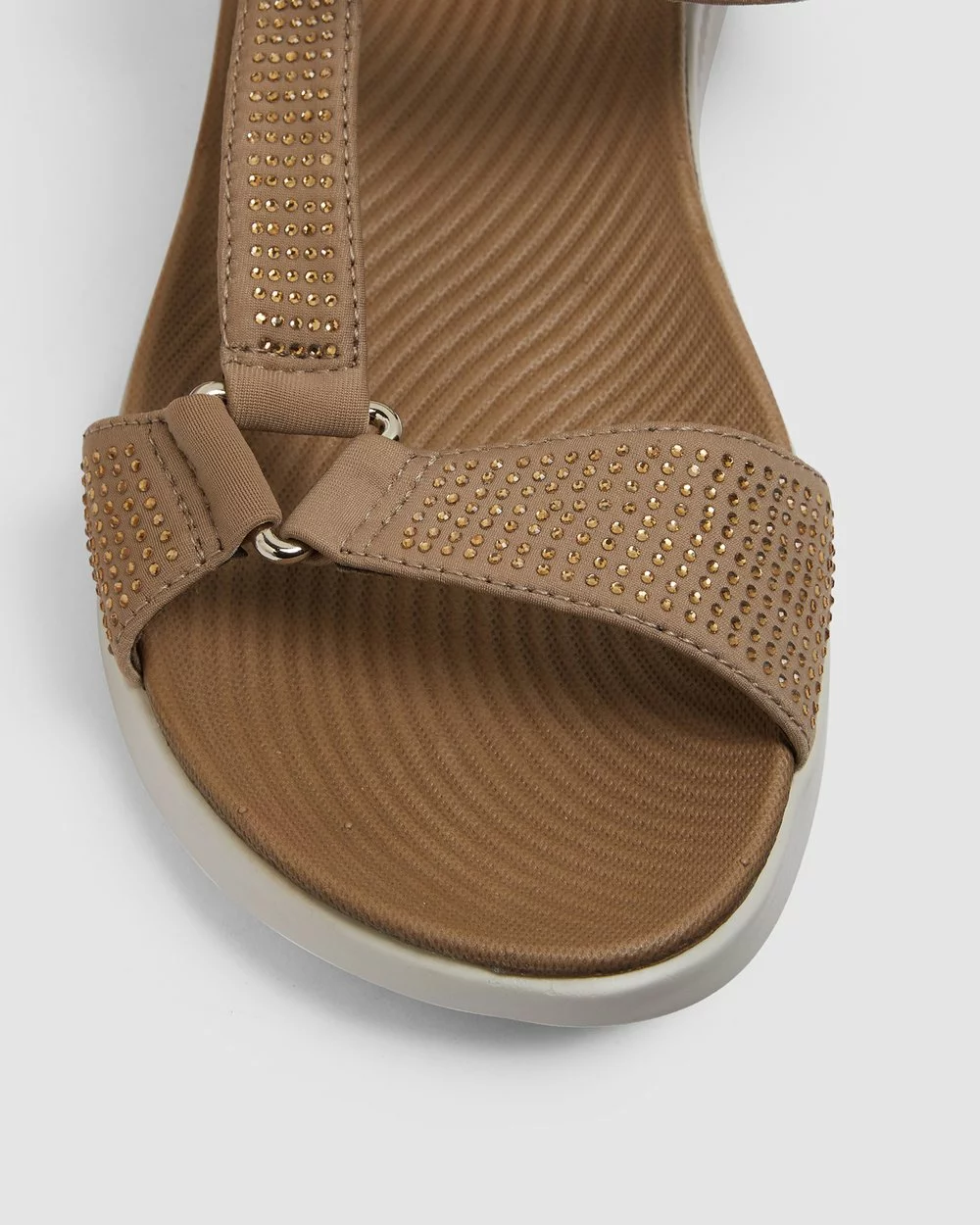 – Adjustable ankle fastening – Moulded foot bed with in built arch support – Slightly elevated back sole