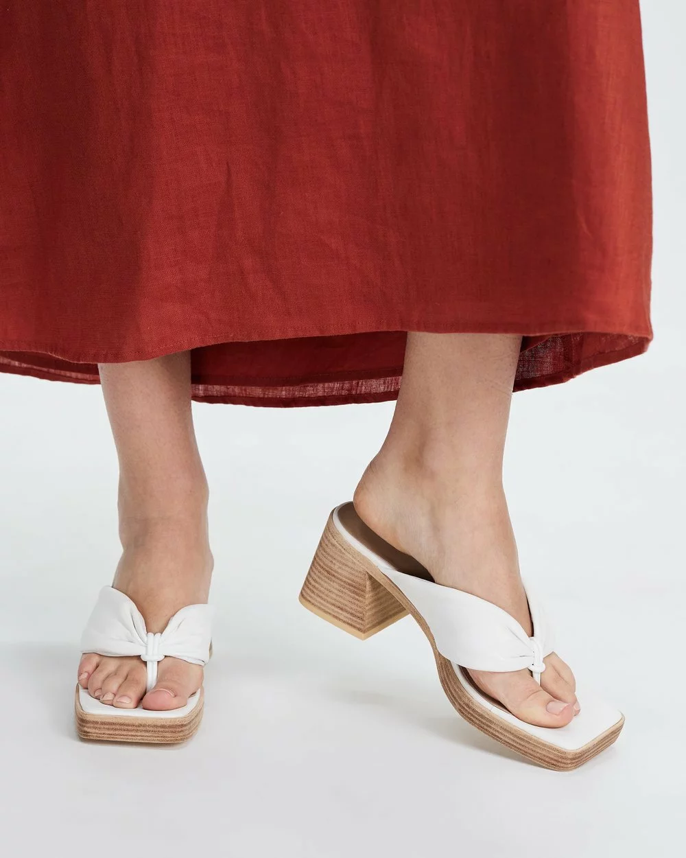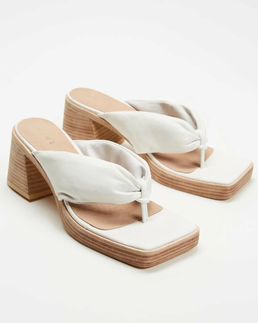 AERE replay nineties it-girl era this season in the wooden-finish Block Thong Heels.