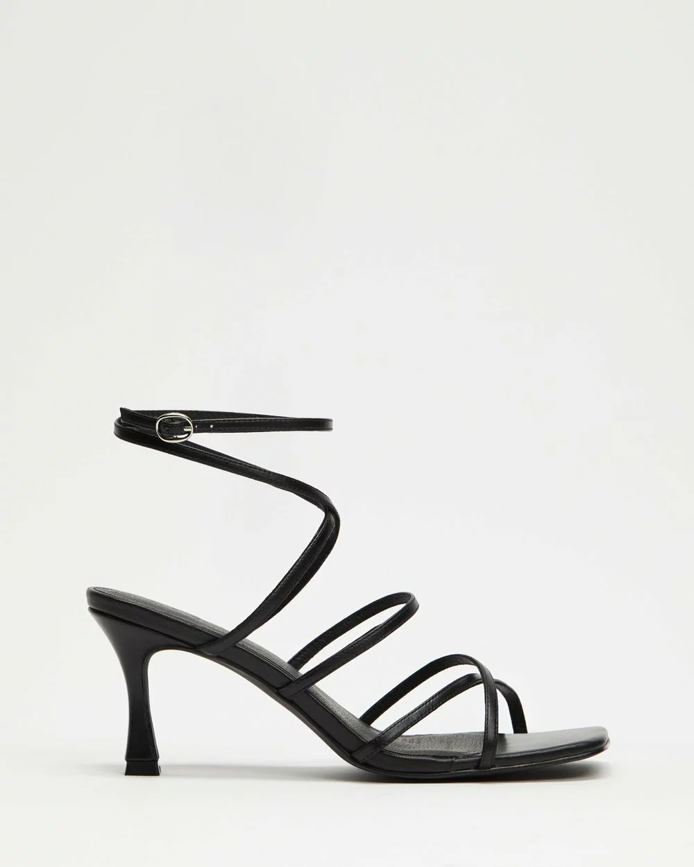 AERE Leather Twist Wrap Heels Black Leather