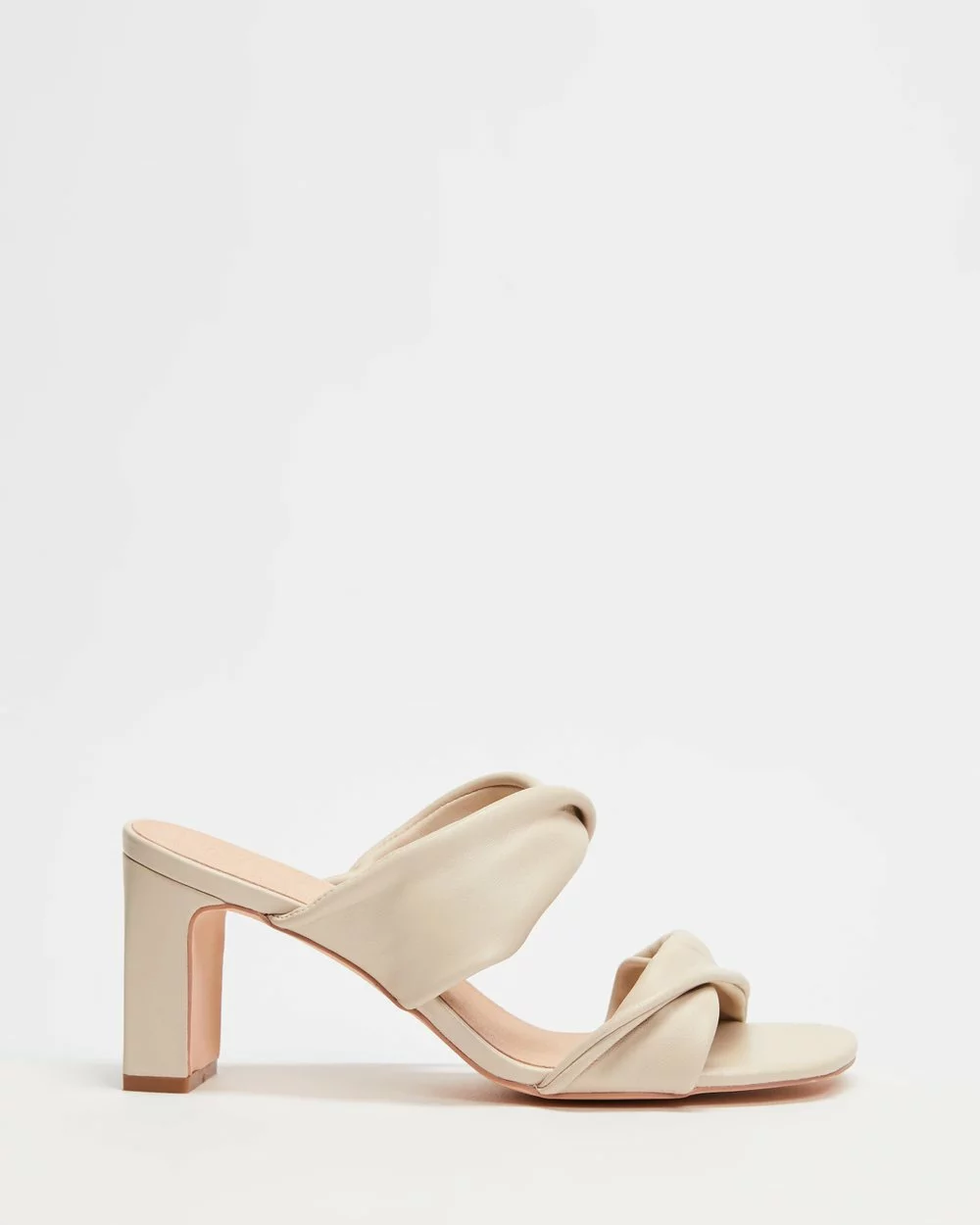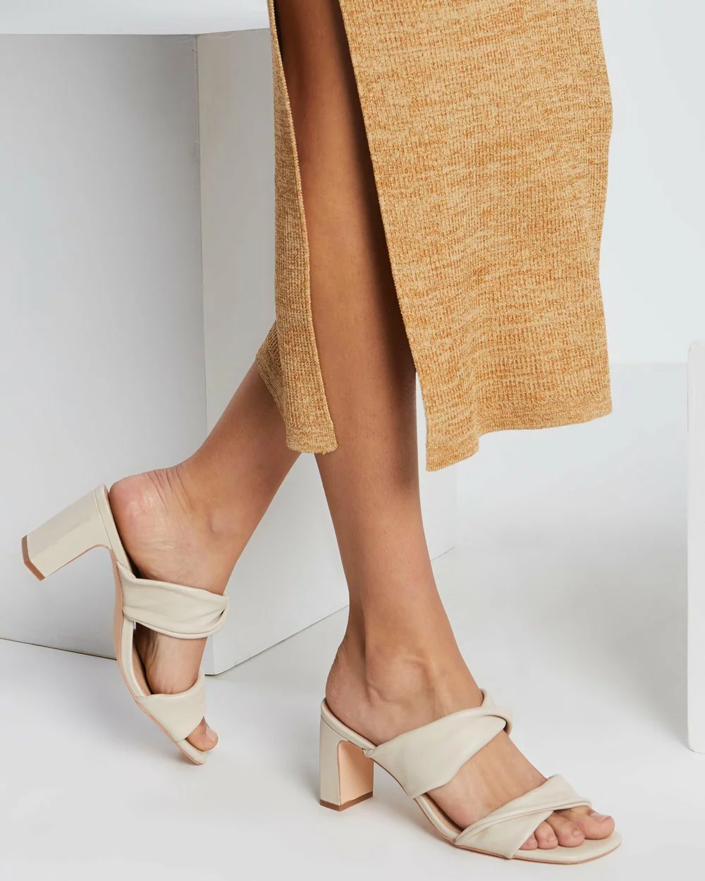 AERE Twisted Double Strap Leather Heels Cream Leather