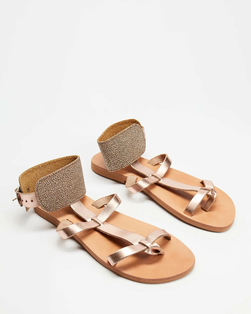 – Thick strap to ankle with buckle and sparkles