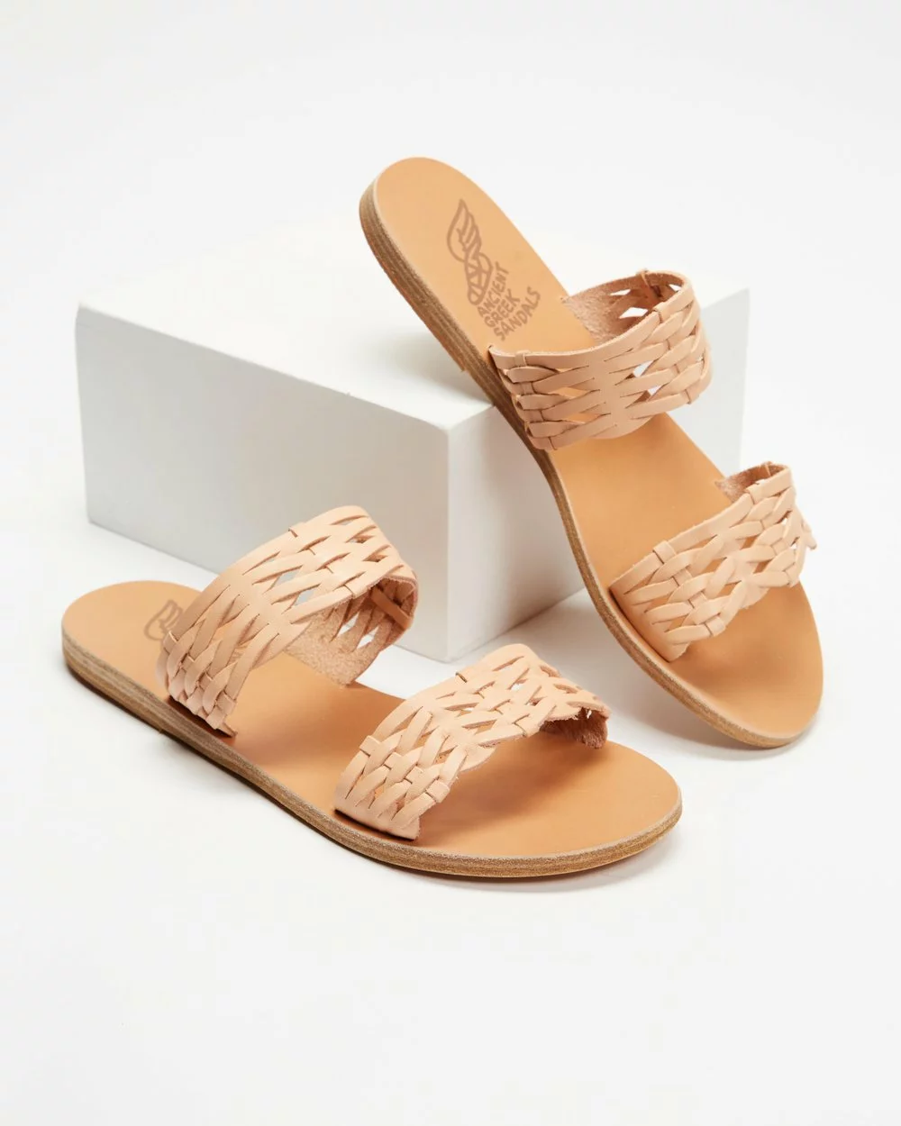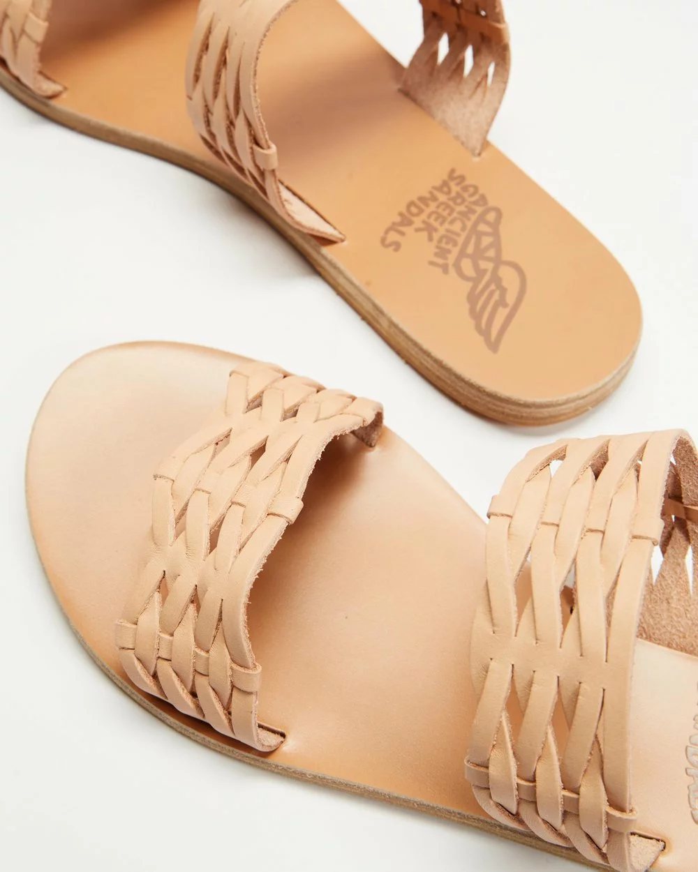 Enjoy sun-dappled days at the beach with the Melia Woven flats from Ancient Greek Sandals, handcrafted from Greece.