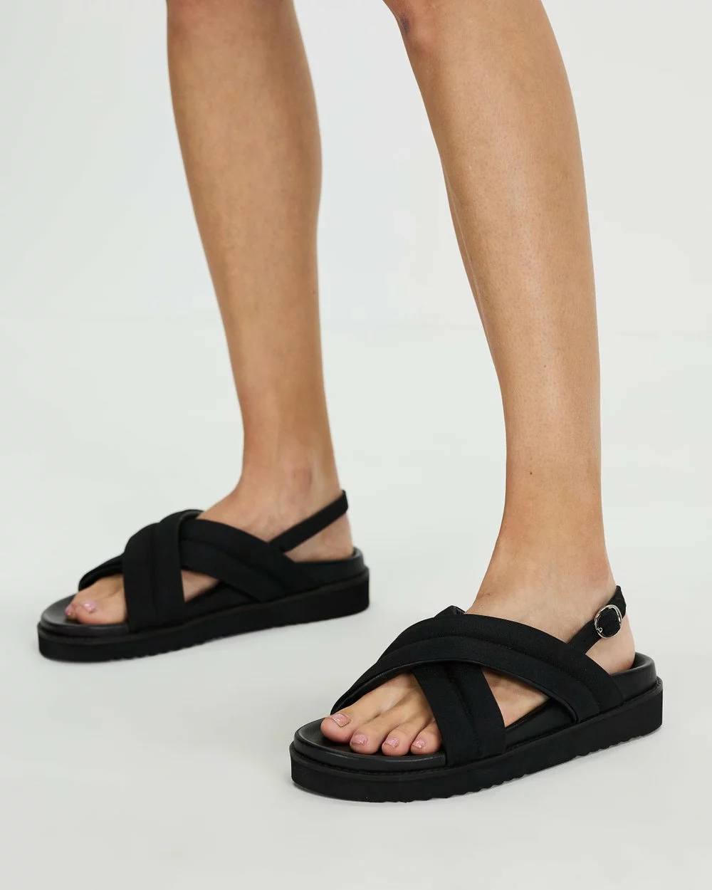 – Quilted crossover vamp straps