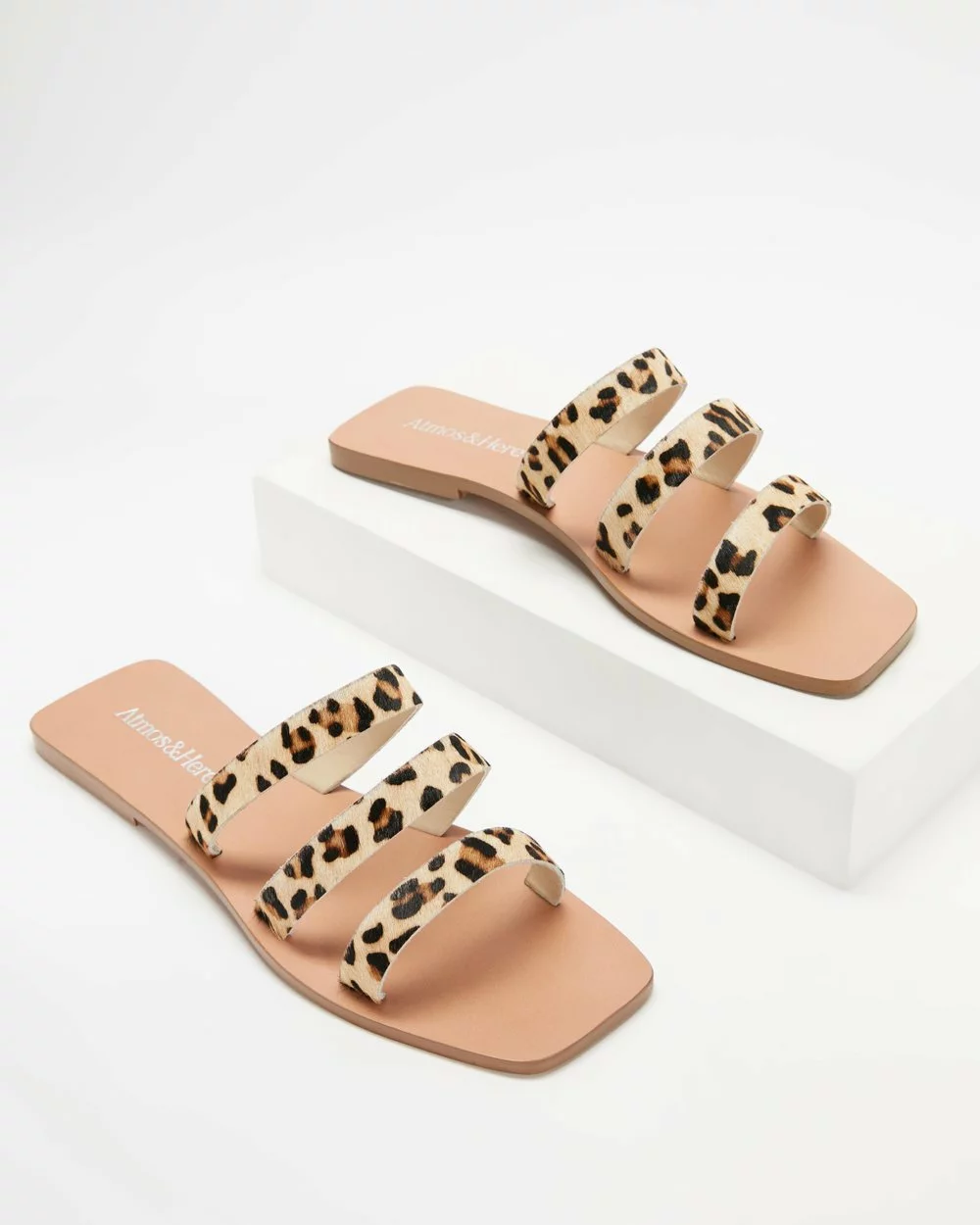 Step into the enduring animal print trend with Atmos&Here‘s cheetah print pony hair Sofia Sandals.