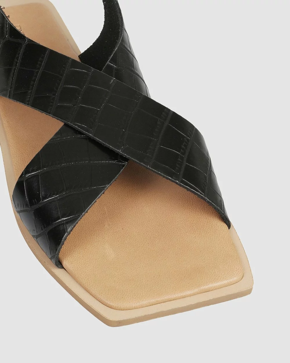 The Piera Sandals by Beau Coops are crafted in Italy with the finest of leathers. The upper is made up of two cross over straps with a buckle fastening on the back strap that can be easily adjusted to provide comfort. The sole features a square toe and heel shape to give these sandals the latest look for this season. A contemporary look to give any summer outfit that complete look.