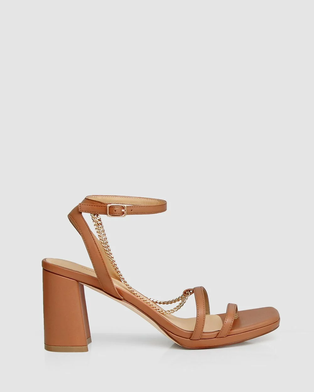 Delicate chain details combine with fine leather straps for chic, modern styling on the Stars Aligned Chain Heel by Belle and Bloom. This perfectly elegant sandal features a softened square toe and comfortable block heel which can take anyone effortlessly from day to night.