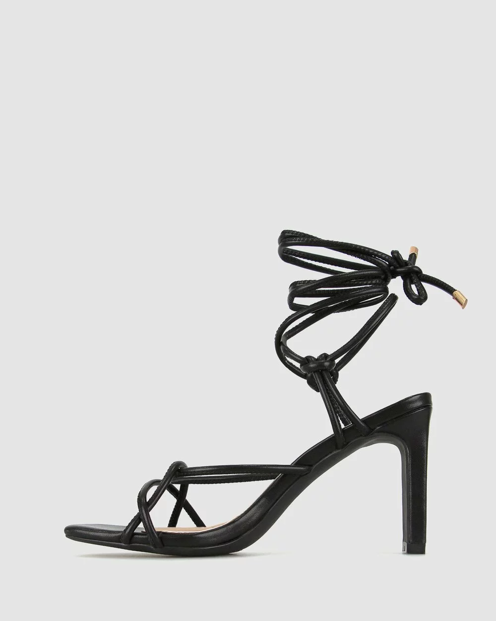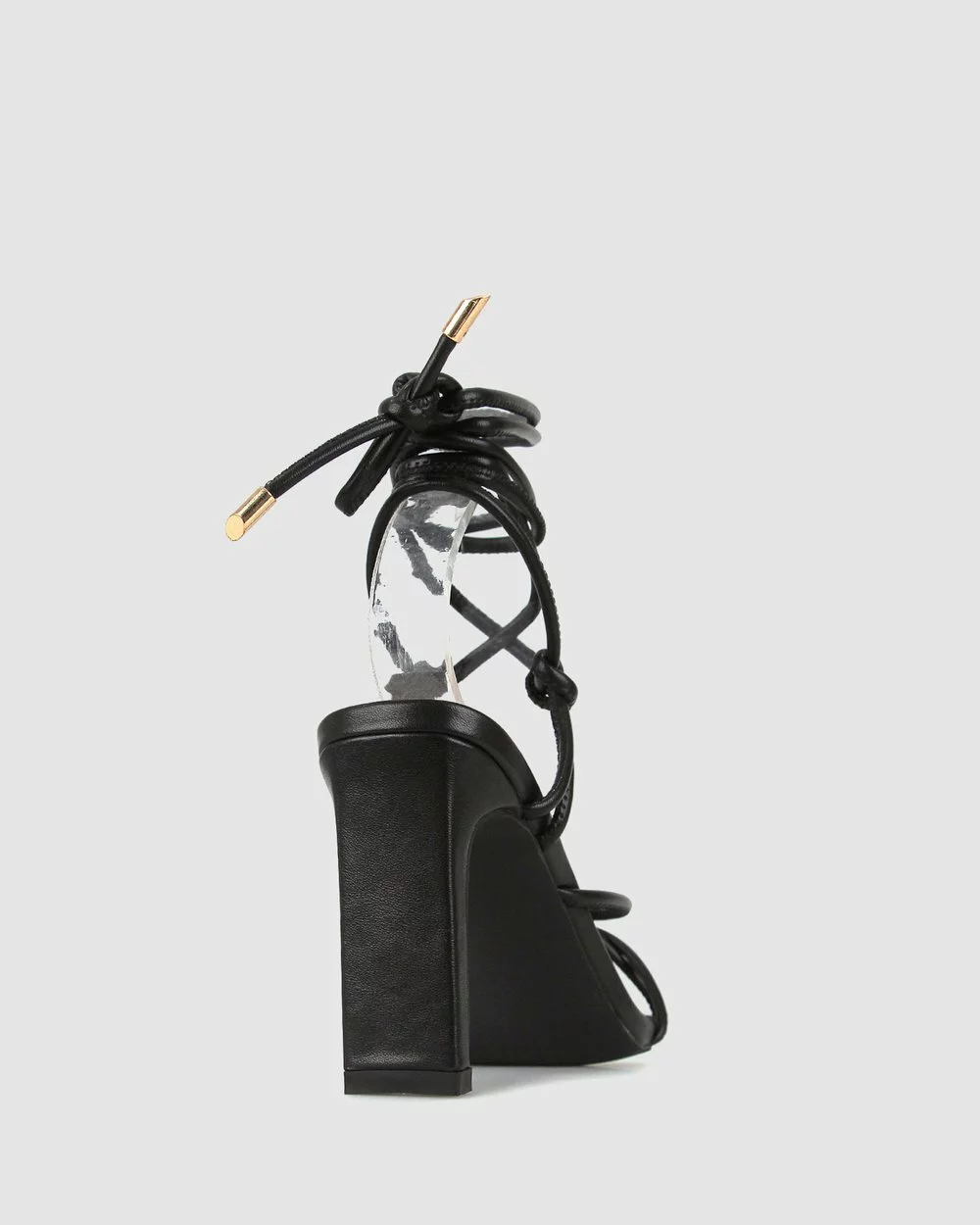 The Betts Kaz Leg Wrap Sandals feature square toe and narrow block heel and are part of the on-trend yet versatile Betts collection which