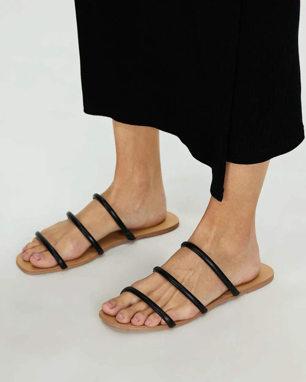 – Squared open toe design