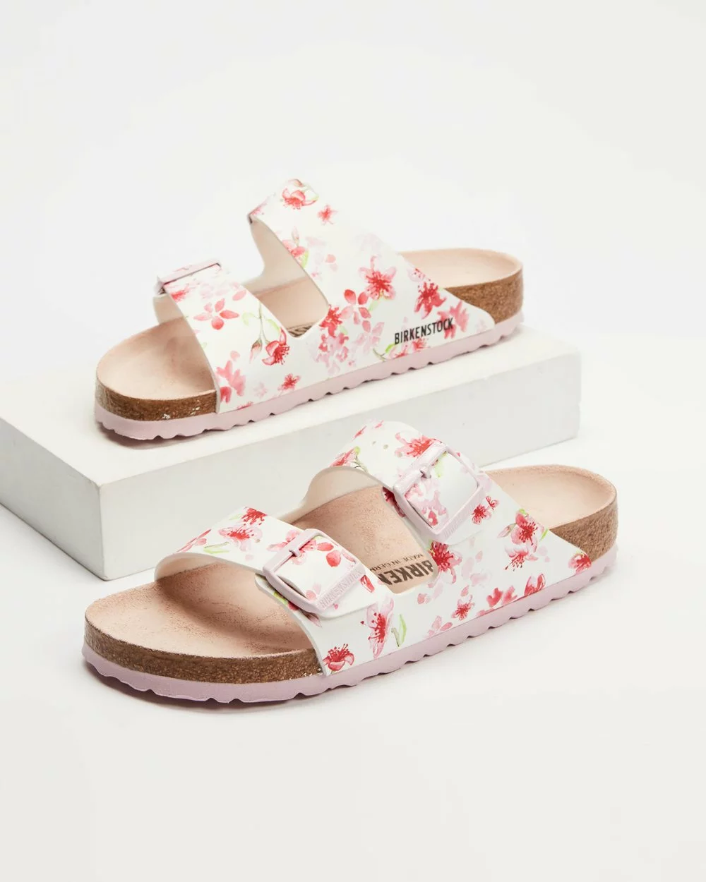 – Floral printed leather upper