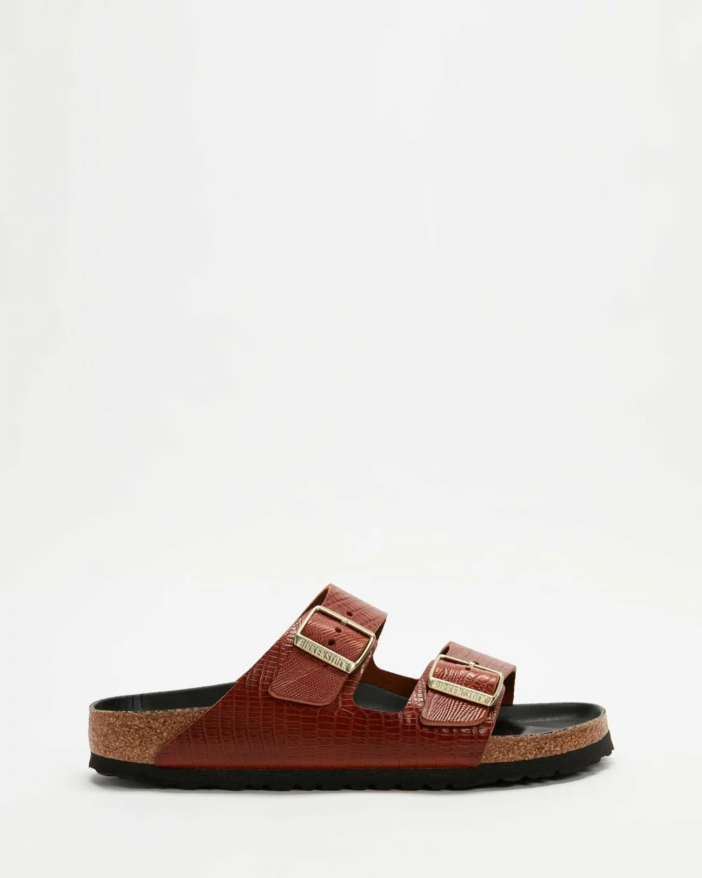 Founded in 1774, Birkenstock is a German footwear brand with extensive knowledge in the area of supportive shoes. The brand uses only high quality materials, whether they are leather or animal free. The leather used is thick and supple, while the famous cork soles are made from Cork Oak trees without any trees being cut or destroyed in the process. The contoured footbeds stretch, flex and move naturally as you walk, while the durable shock-absorbing EVA soles ensure all-day comfort.