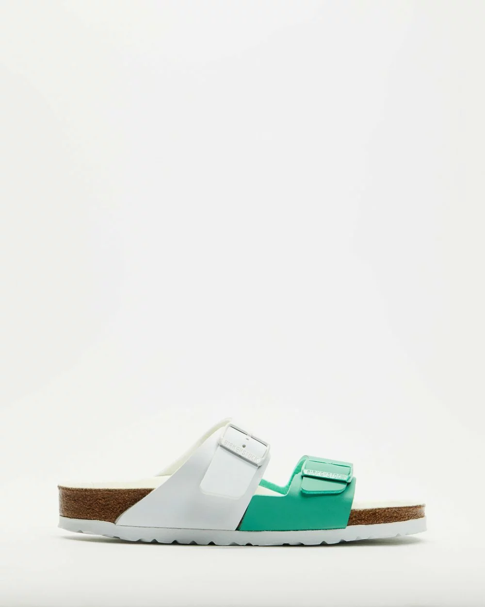 Founded in 1774, Birkenstock is a German footwear brand with extensive knowledge in the area of supportive shoes. The brand uses only high quality materials, whether they are leather or animal free. The leather used is thick and supple, while the famous cork soles are made from Cork Oak trees without any trees being cut or destroyed in the process. The contoured footbeds stretch, flex and move naturally as you walk, while the durable shock-absorbing EVA soles ensure all-day comfort.