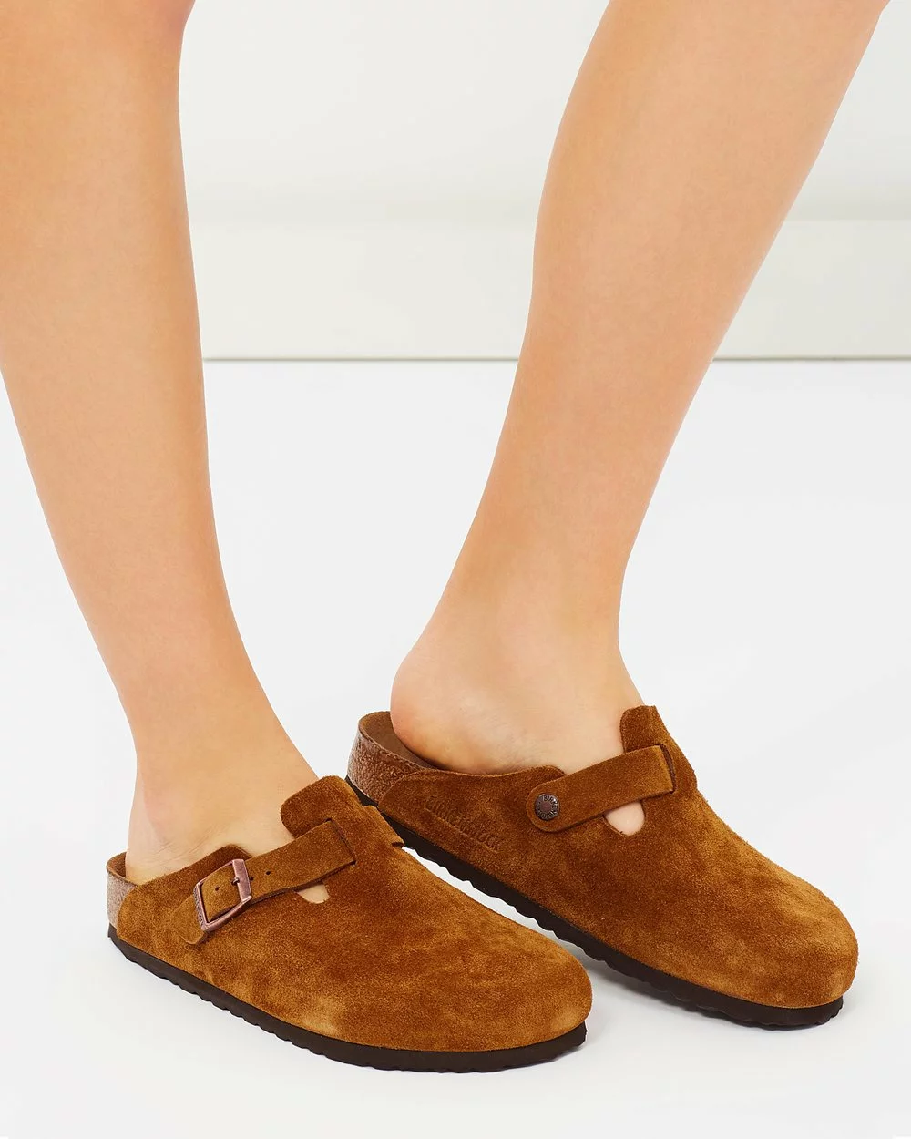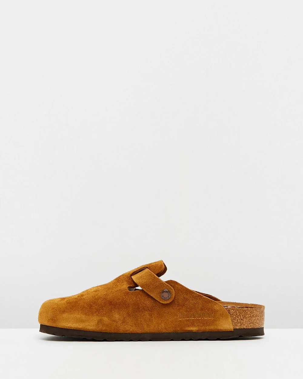 Founded in 1774, Birkenstock is a German footwear brand with extensive knowledge in the area of supportive shoes. The brand uses only high quality materials, whether they are leather or animal free. The Boston Regular boasts a suede upper with an easy slip-on design and contoured soft footbed for unrivaled everyday support.