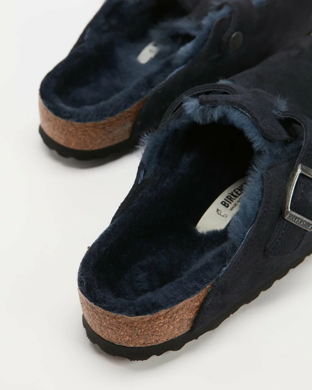 – Genuine soft suede leather upper; genuine shearling to footbed