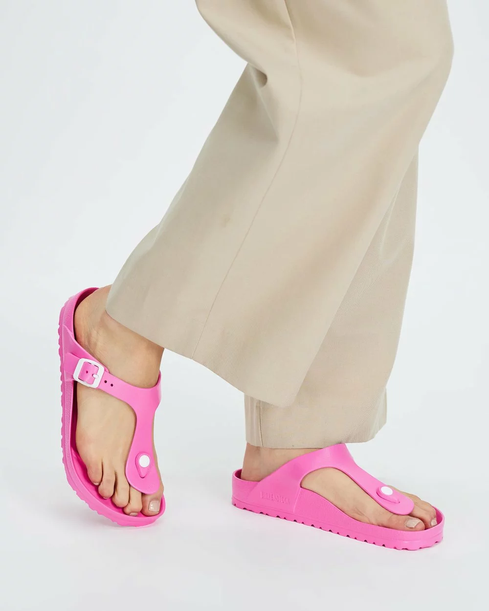Founded in 1774, Birkenstock is a German footwear brand with extensive knowledge in the area of supportive shoes. The brand uses only high quality materials, whether they are leather or animal free. The leather used is thick and supple, while the famous cork soles are made from Cork Oak trees without any trees being cut or destroyed in the process. The contoured footbeds stretch, flex and move naturally as you walk, while the durable shock-absorbing EVA soles ensure all-day comfort.