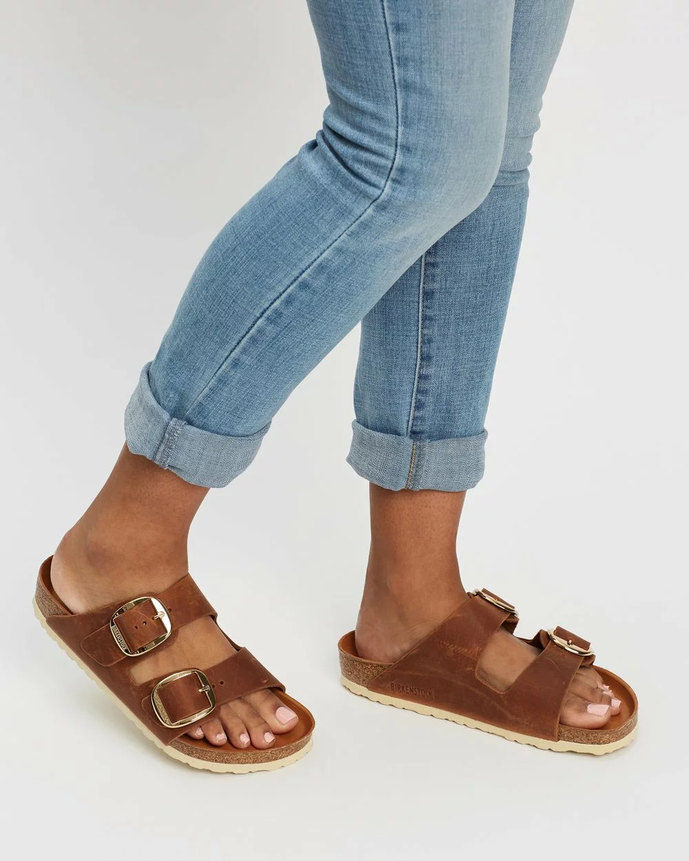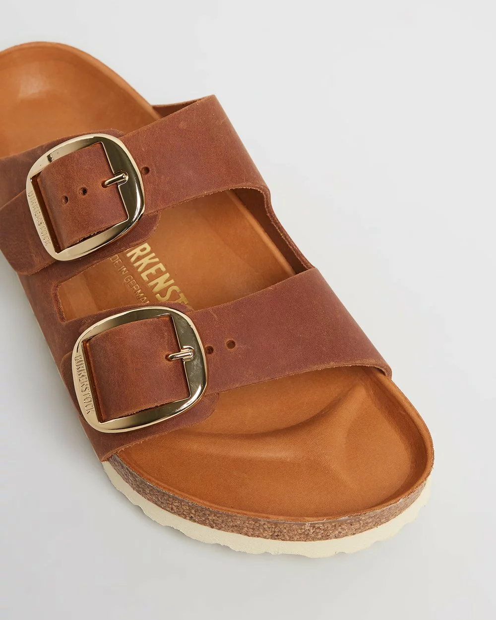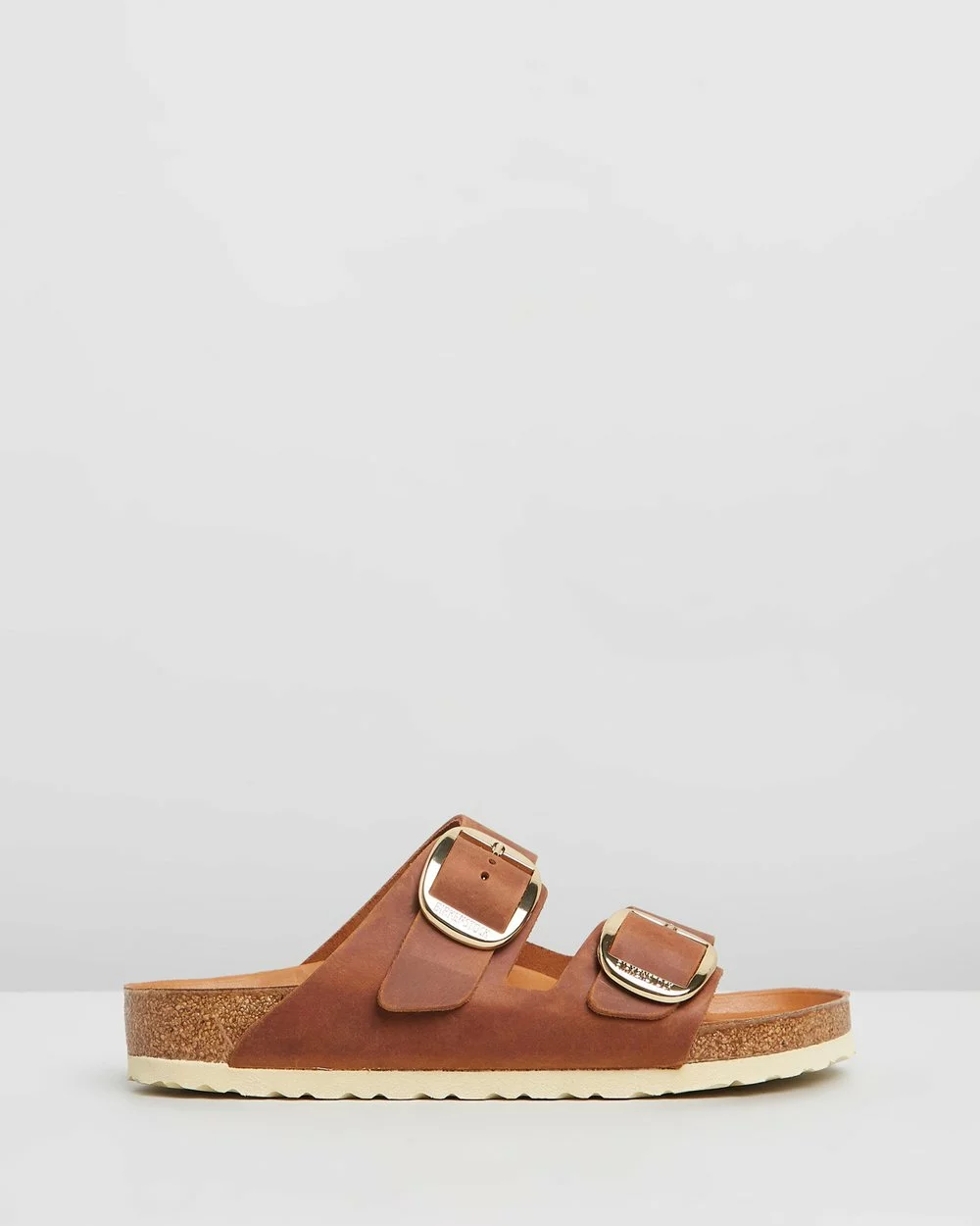 A stylish spin on the famed Birkenstock leather sandal, Arizona Big Buckle Regular features the signature shaped cork-latex footbed and slide-on design but with wide vamp straps and enlarged strap buckles.