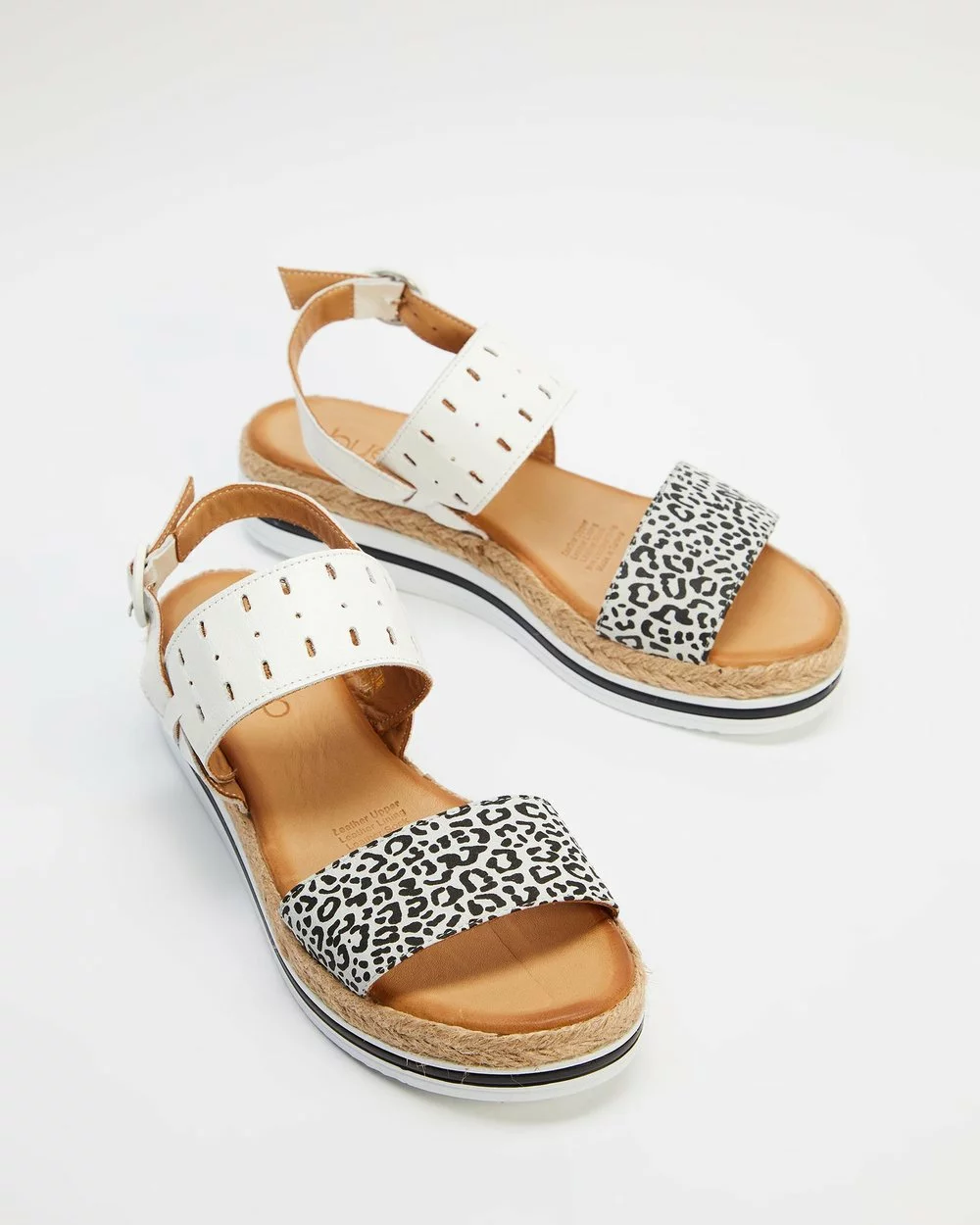The Arizona platform sandals from Bueno turn summertime styling into a breeze with their leather strappy upper and round buckle, lifted above-ground by a woven-welted platform rubber striped sole. Pair with 3/4 mom jeans and a baggy white tee for a laidback Monday-through-Sunday fit.