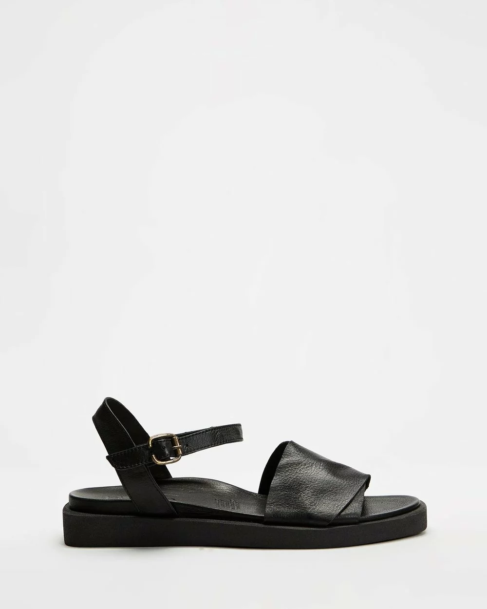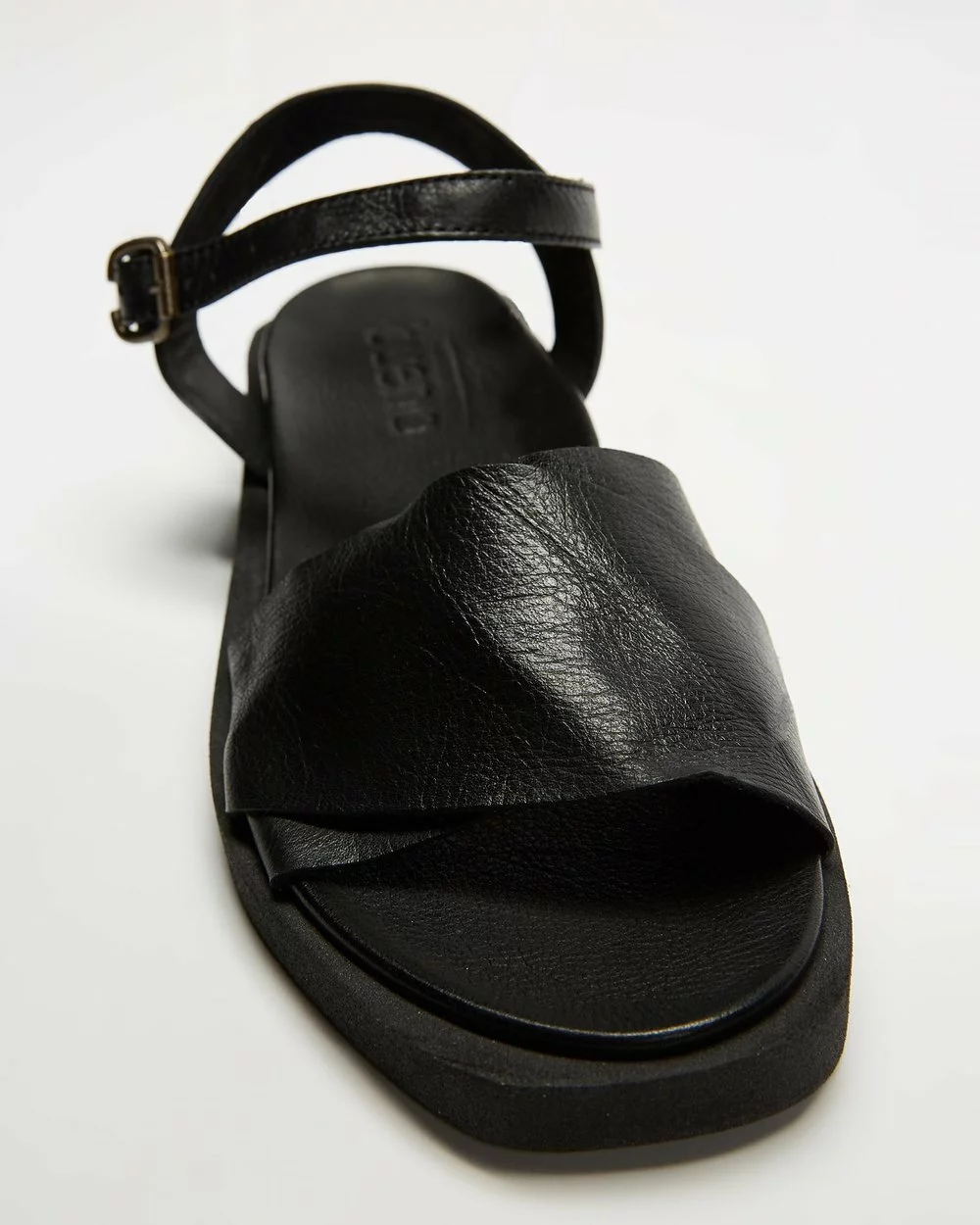 Crafted from soft buttery leather, the Jane sandals from Bueno feature asymmetrically crossed vamp straps.