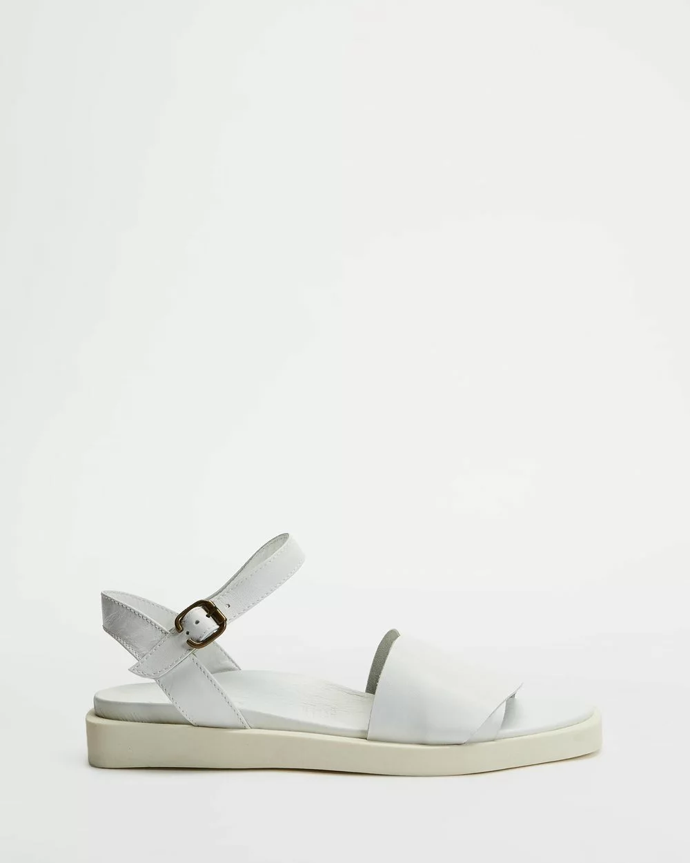 Crafted from soft buttery leather, the Jane sandals from Bueno feature asymmetrically crossed vamp straps.