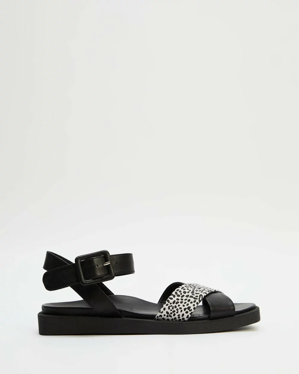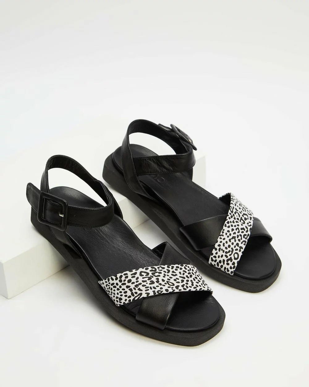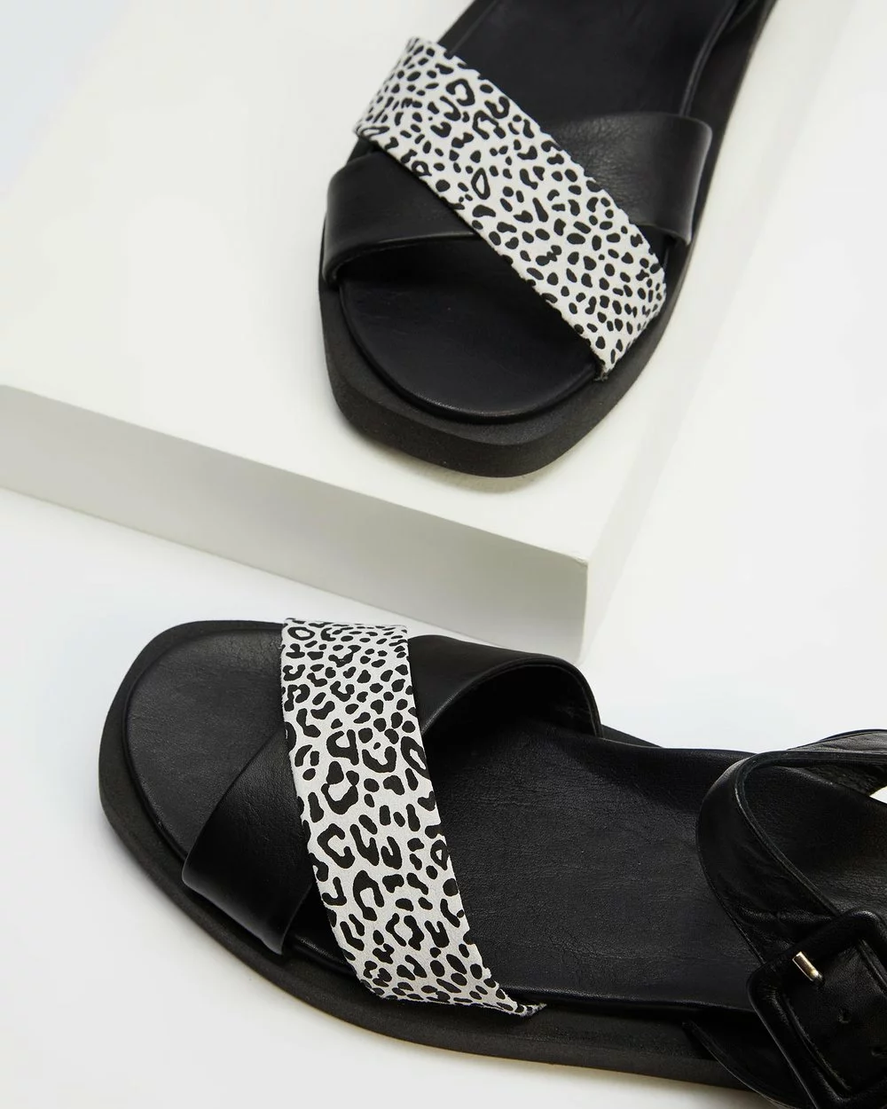 – Cross-over straps; leopard print detail