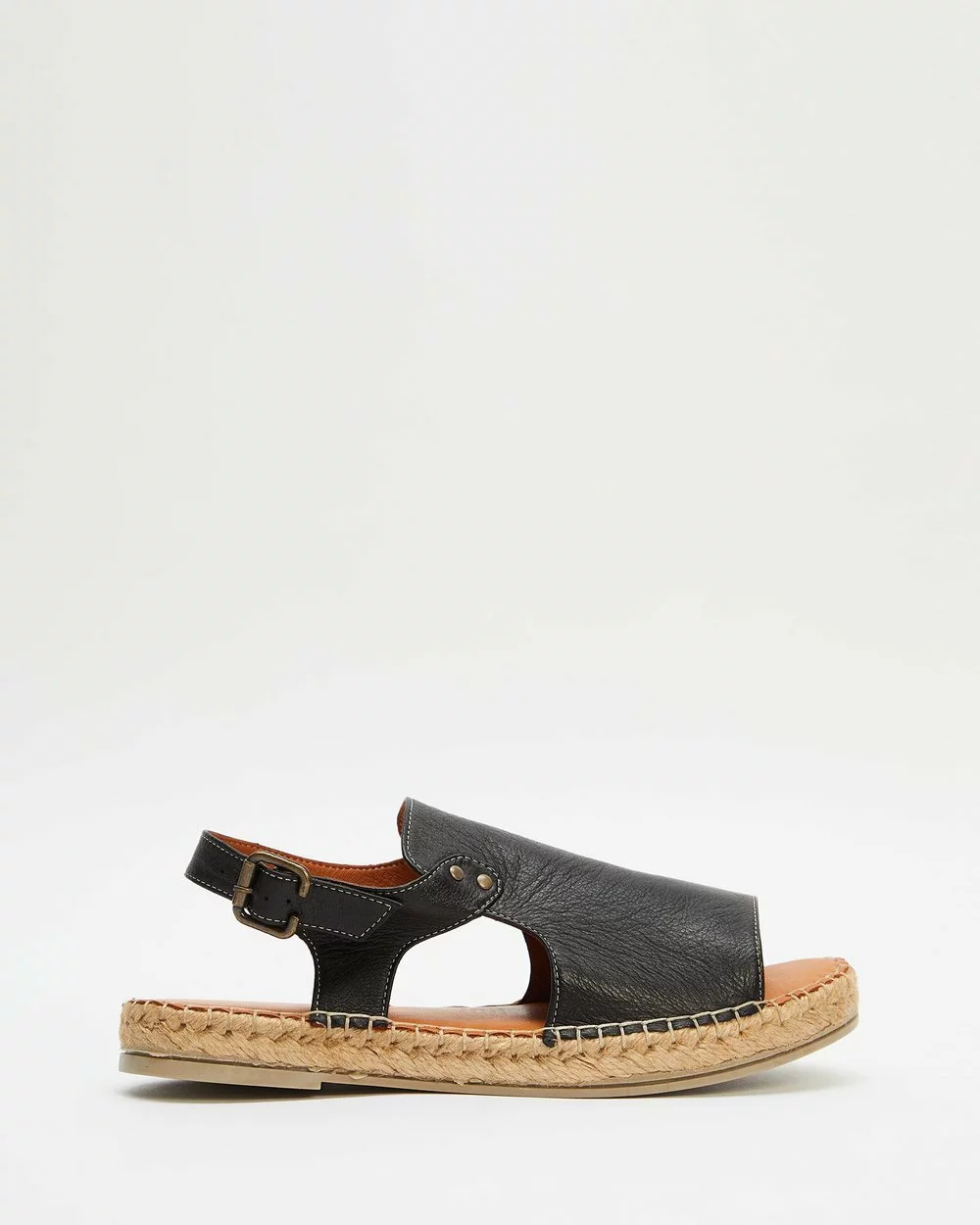 Destined to become your everyday staple, the Kiss sandals by Bueno are crafted from smooth leather with topstitching detail and a classic espadrille outsole for casual styling.