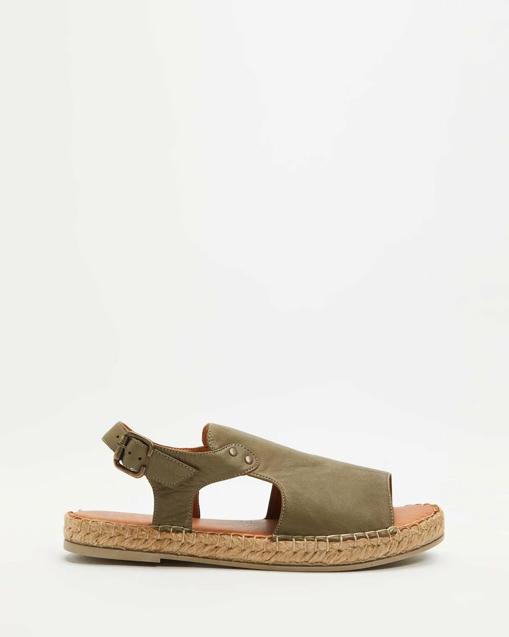 Destined to become your everyday staple, the Kiss sandals by Bueno are crafted from smooth leather with topstitching detail and a classic espadrille outsole for casual styling.