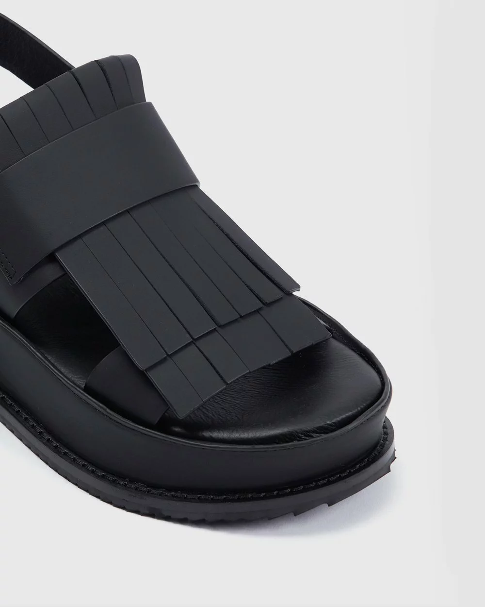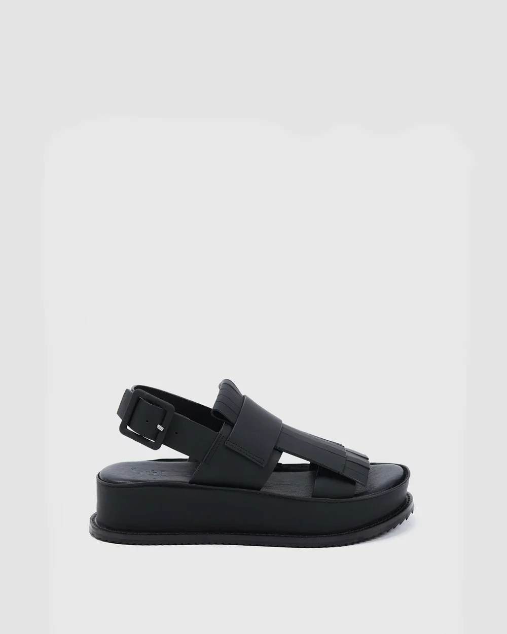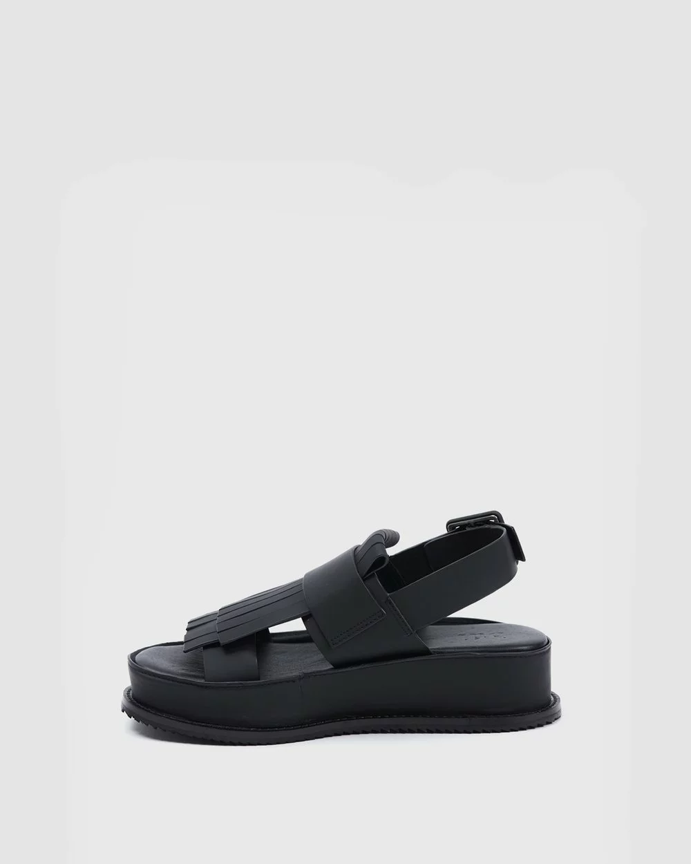 From the latest collection ‘El Hierro’, the Ha Sandals by búl is a platform sandal with fringed leather detailing and an ankle strap with self-covered buckle in soft matte leather. Also available in Blue and Stone.