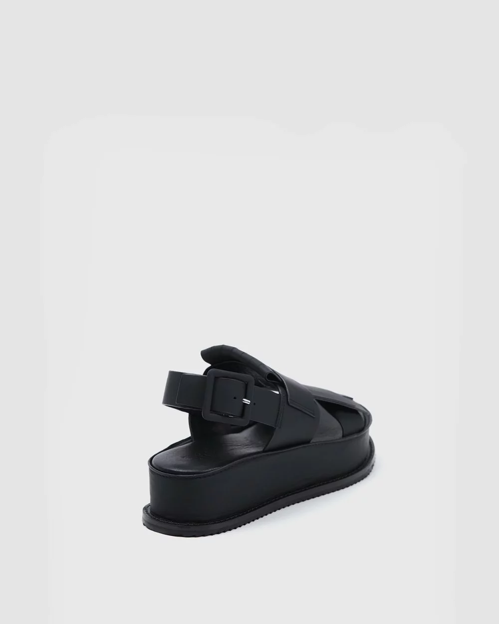 – Matte leather- Ankle-strap fastening – Open toe- Leather upper, leather lining, rubber sole- Platform height front/back: 2/4cm