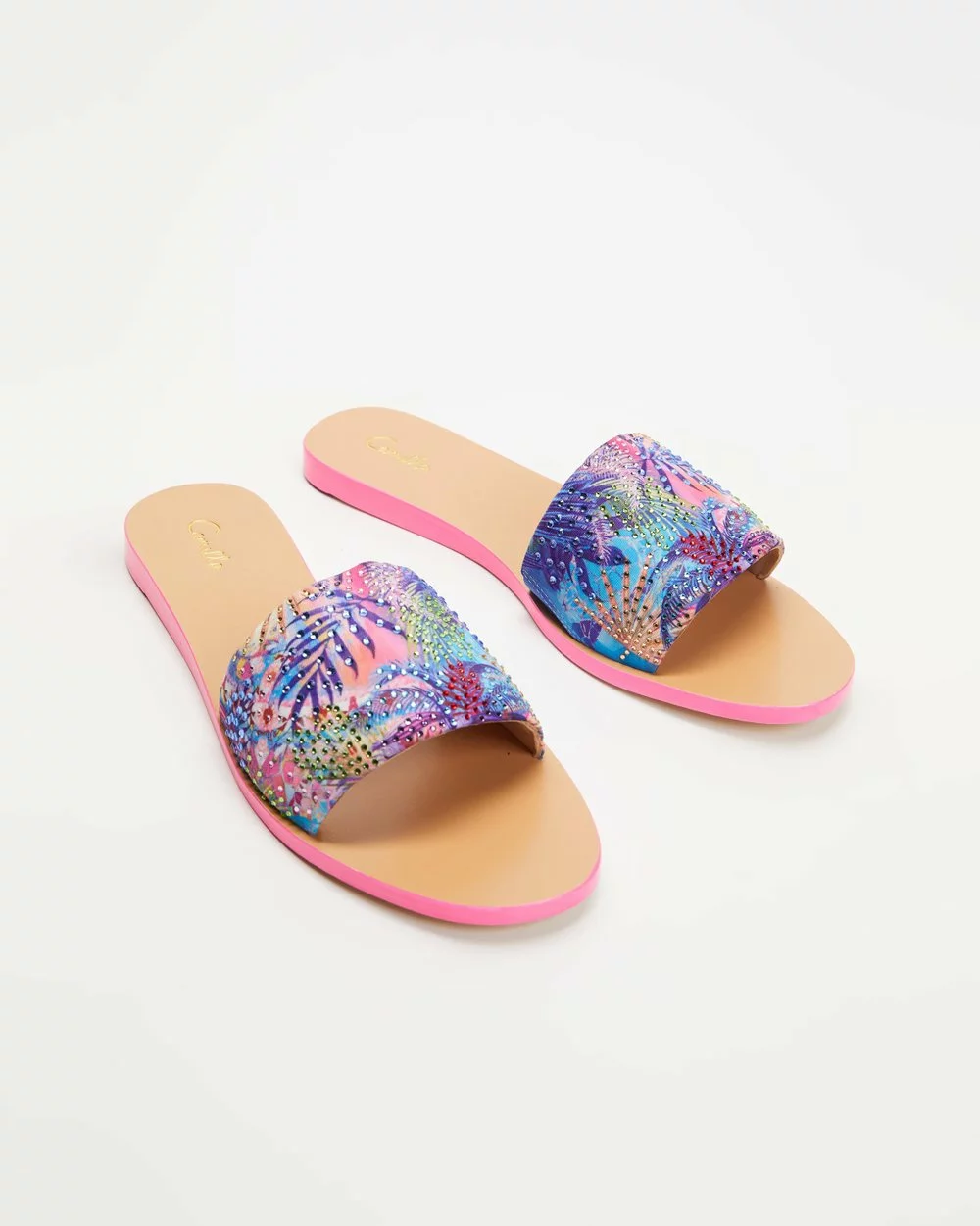 Camilla‘s Printed Slides are an effortlessly glamourous addition to your summer rotation. ​With a printed design inspired by high-end 90s stylings, these luxe sandals epitomise resort chic.