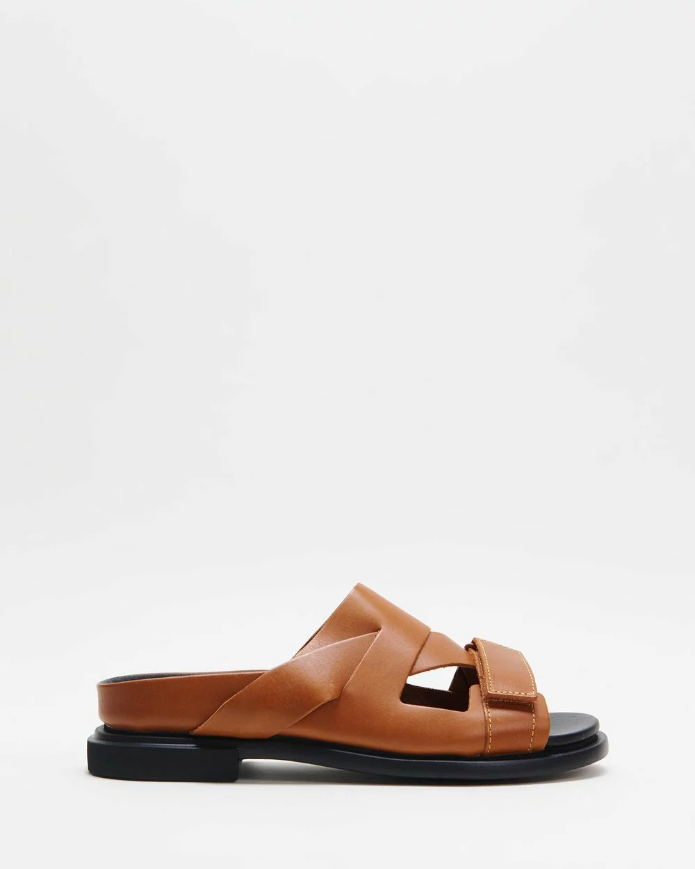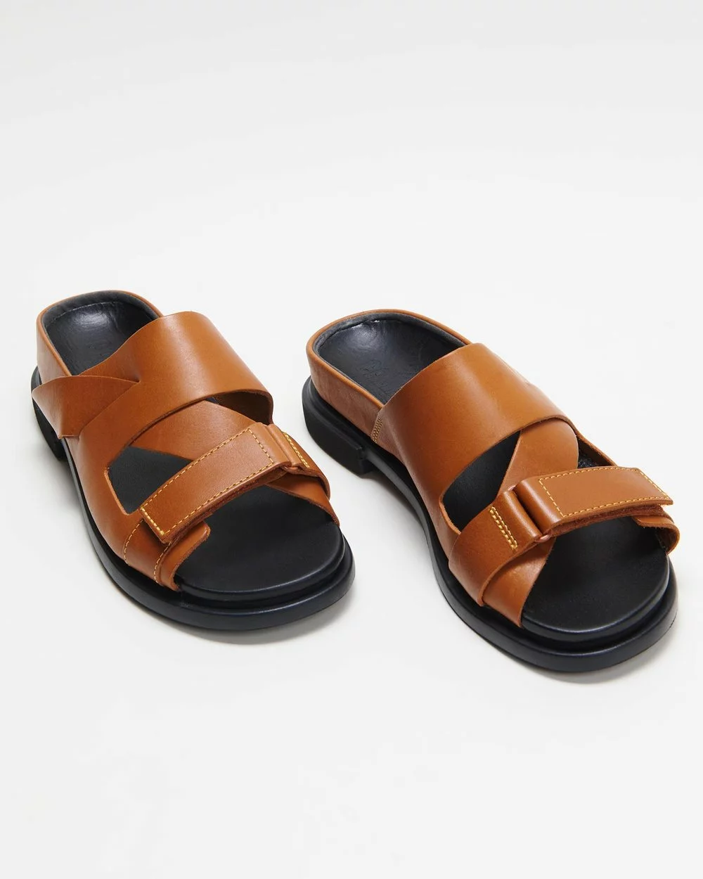 – Crossover leather vamp straps; adjustable Velcro strap