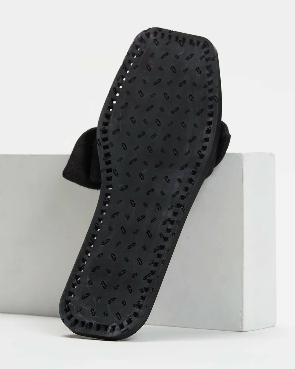 For a range of considered, contemporary footwear that lets you feel the earth beneath your feet, look no further than Carlotha Ray. Slip into the Lino Knot Slip-On Sandals this season to complement your roster of sun dresses, finished in classic black linen with delicate knotted detail and an architectural cut-out sole.