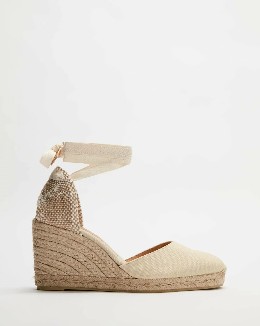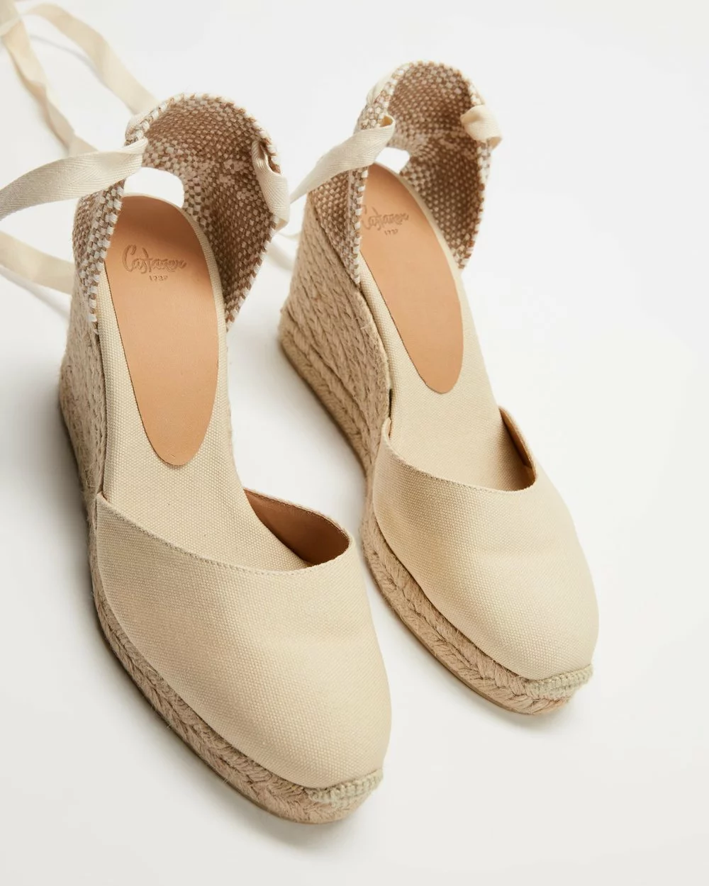 Made in Spain, the Carina wedge heels by Castaner are true to the company’s classic and feminine style. These heels feature detailed braiding to the heel and strappy tie up fastening for an extra bit of glam.
