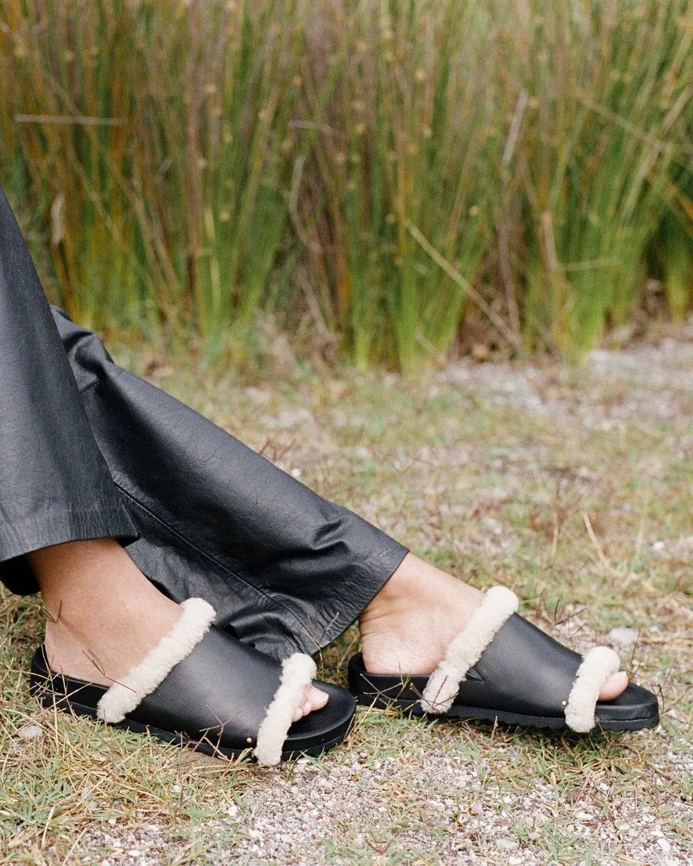 Slip into our SHEARLING slides this season. The perfect trans-seasonal shoe to wear for both warm and cool days. Style with shorts or pants for an effortless look.
