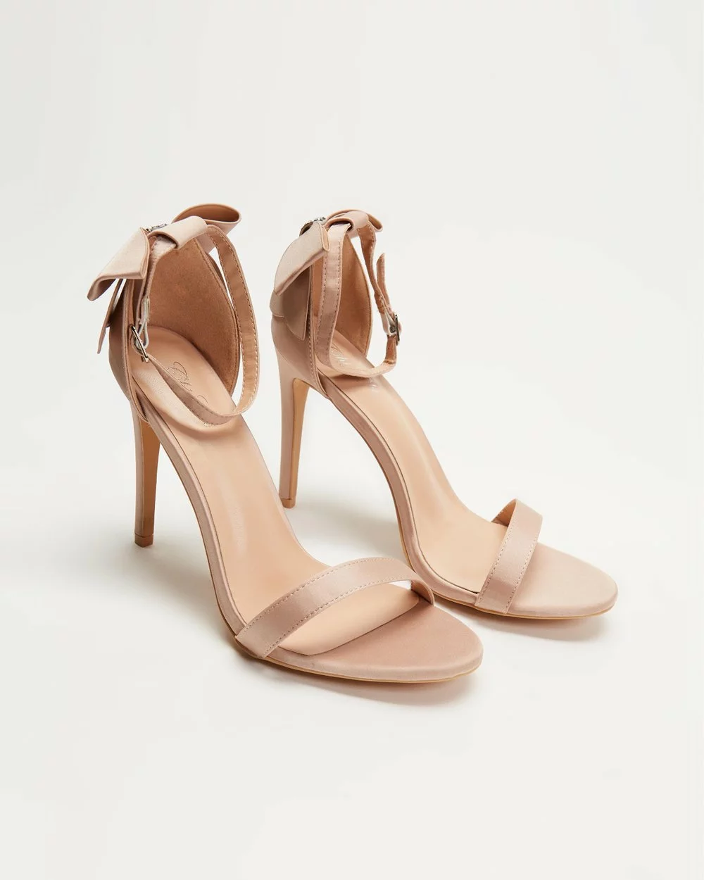 – 11cm stiletto heel; raised heel cap with bow detail