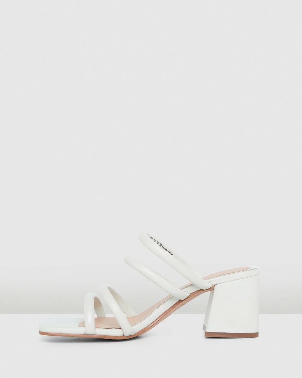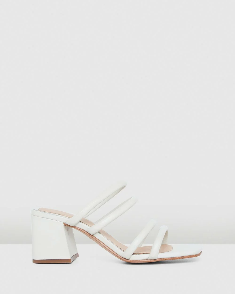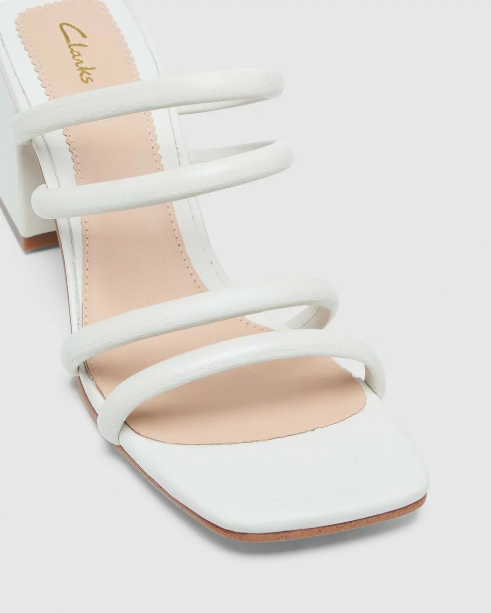 The Clarks leather Sheer65 Mule has contemporary square toe and a block heel for added lift. These slip-on heels have soft tubular straps.