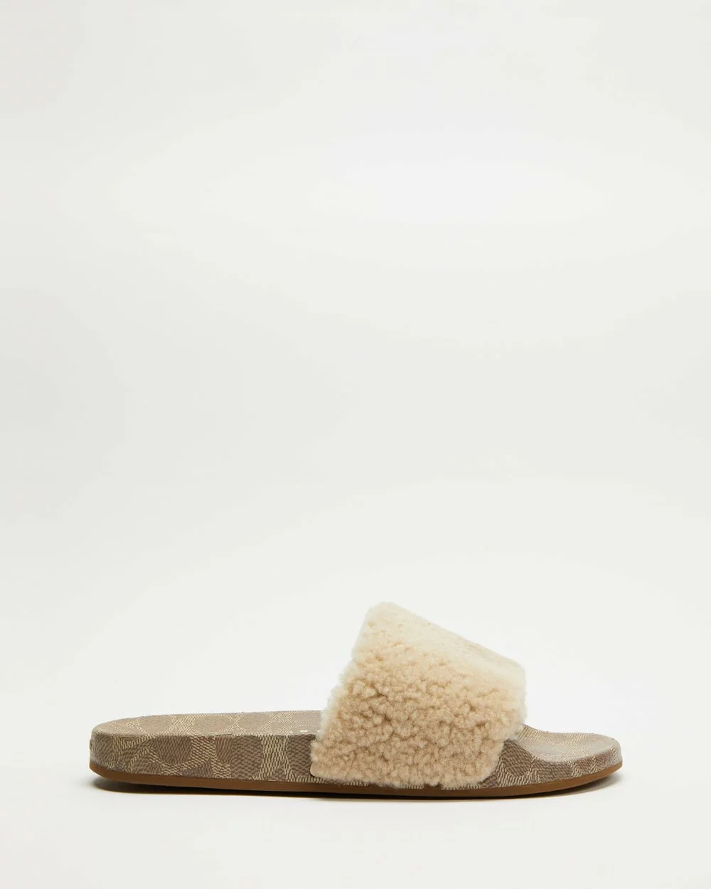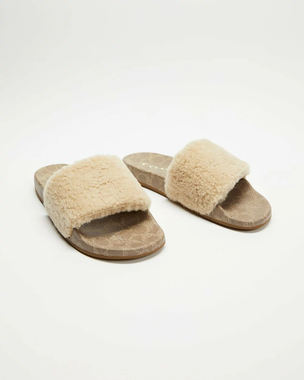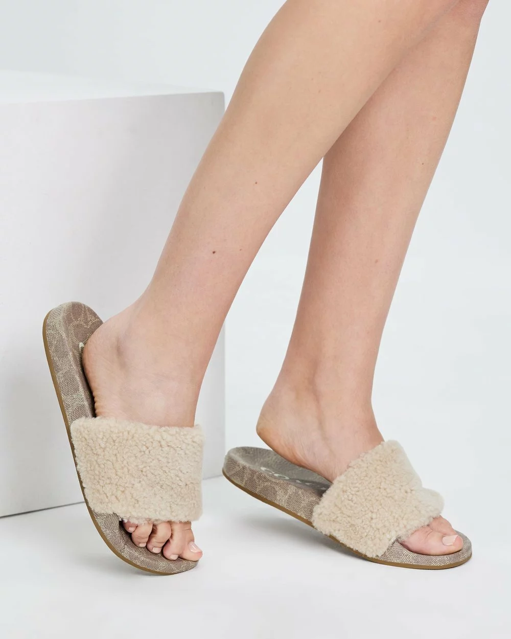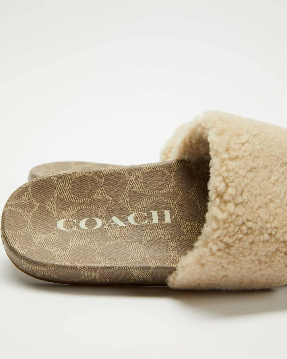 Take your slip-on shoe edit up a fashion notch with the Ulla Shearling Slides by Coach. The branded footbed adds an extra luxe feel to these high-end shoes.