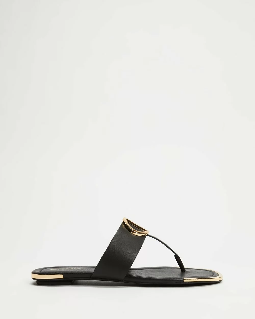 Undeniably one of the defining houses of the New York fashion world, DKNY was founded in 1989 as an embodiment of Donna Karan’s commitment to creating for the modern woman. The Halcott Flat Thong Sandals are polished footwear that speak to the metropolitan woman on the move.