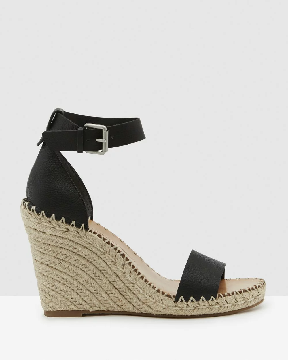 – Textured 10cm raffia wedge heel