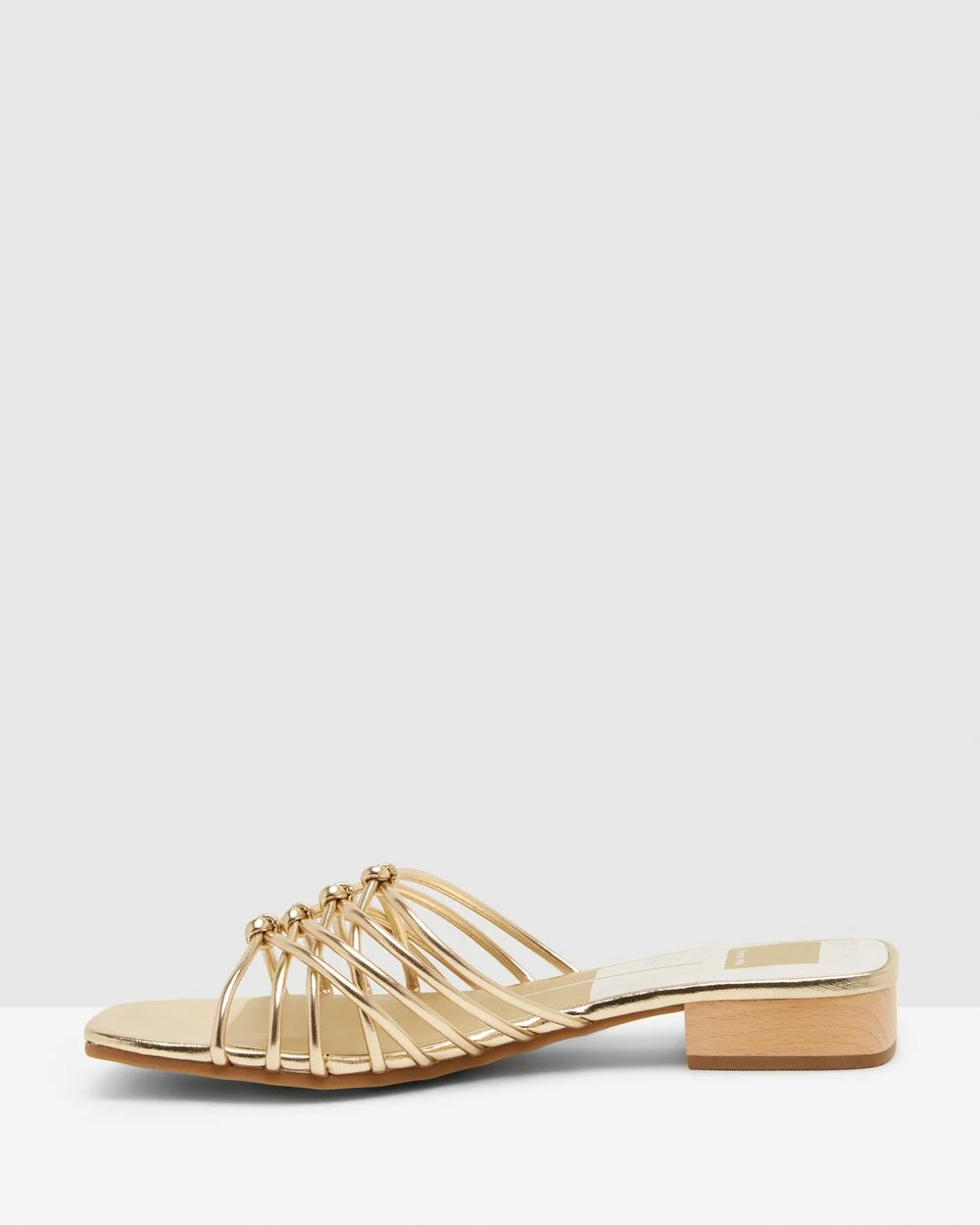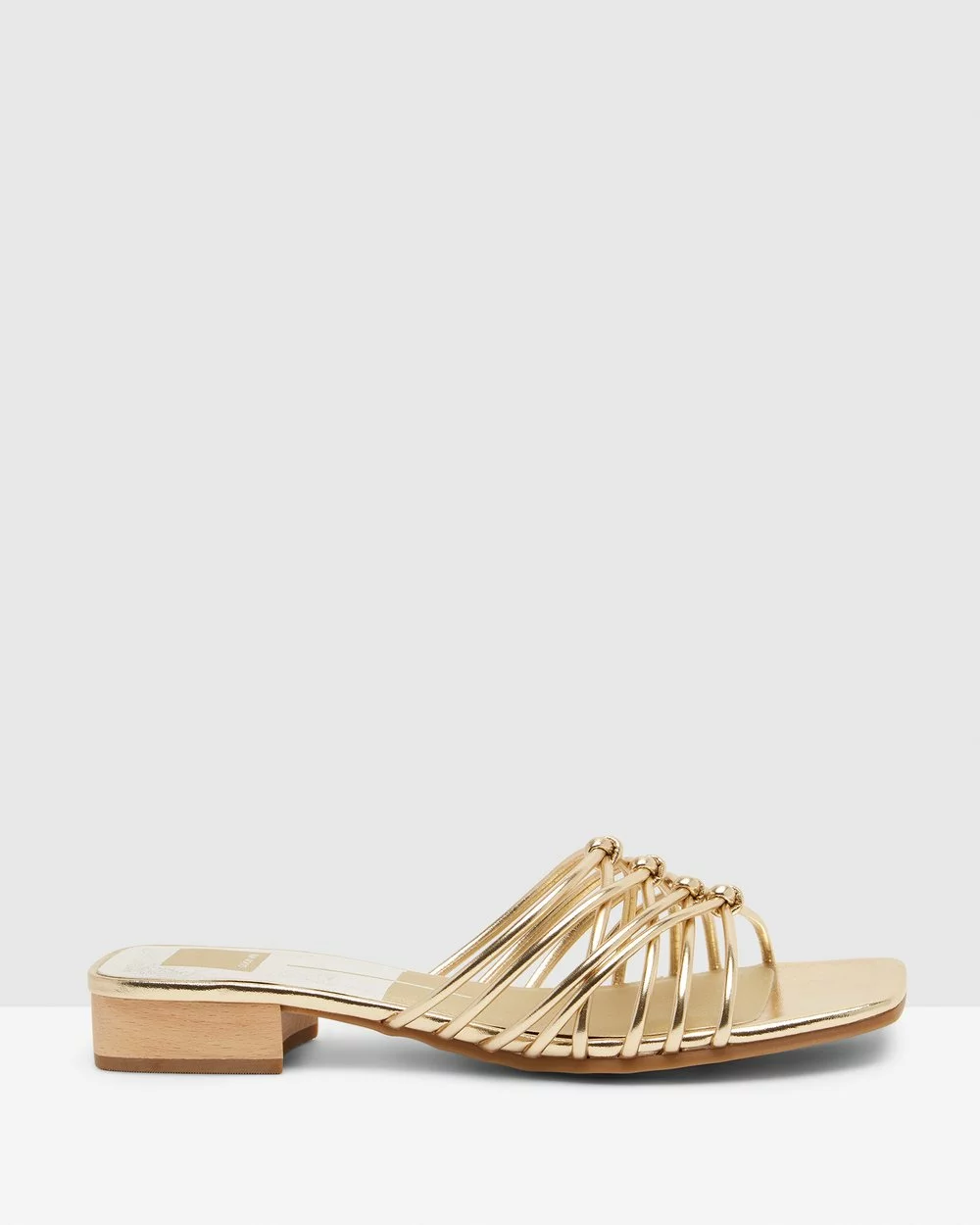 With its slim gold strappy design and glam low gold heel, the Riley Sandal from Dolce Vita is both comfy and chic.