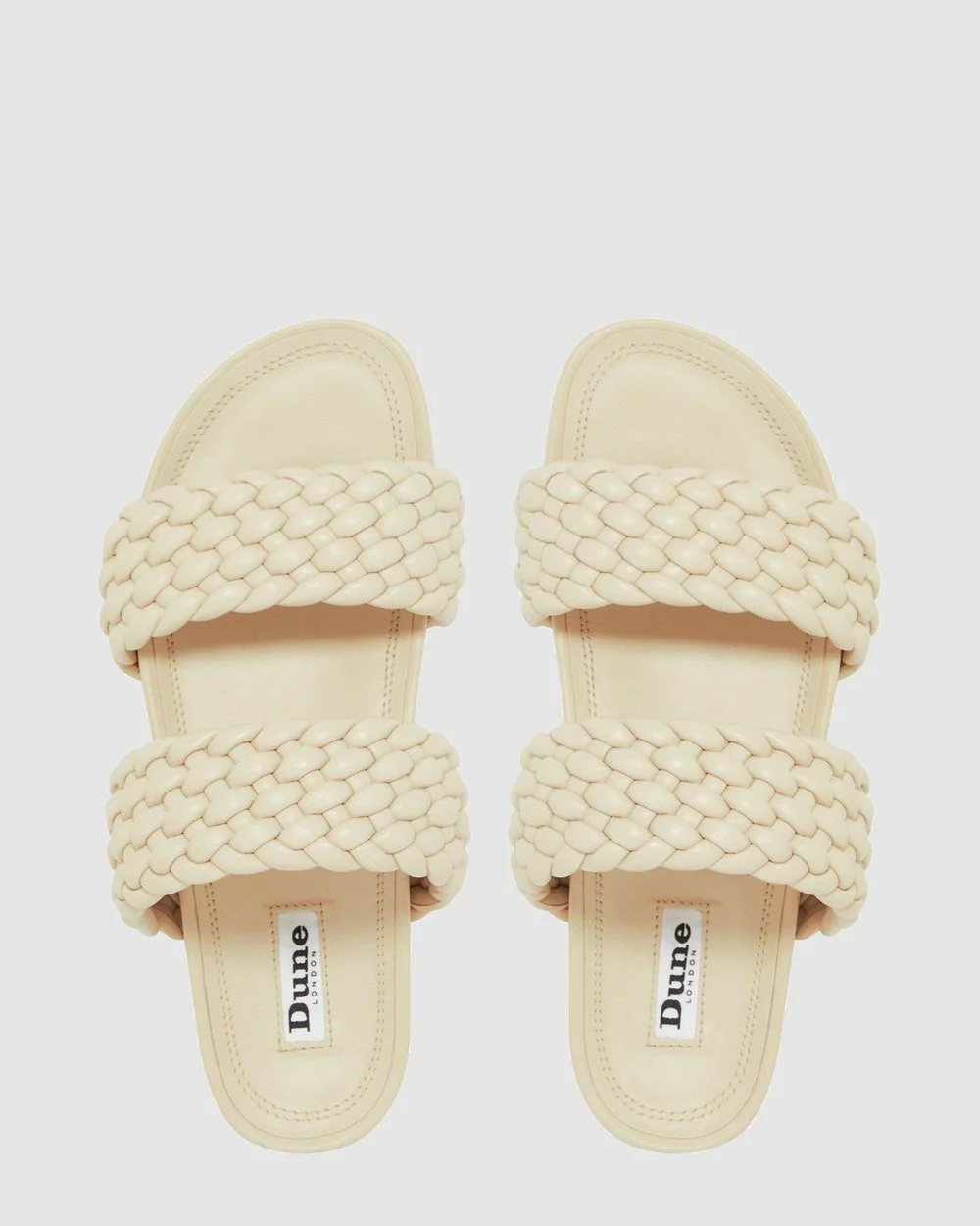 Dune London is a luxury English footwear and accessories brand, devoted to crafting high quality, innovative pieces. The Dune London Laylow Slides feature two chunky woven straps and a padded ergonomic sole, for comfort and style, all-in-one.