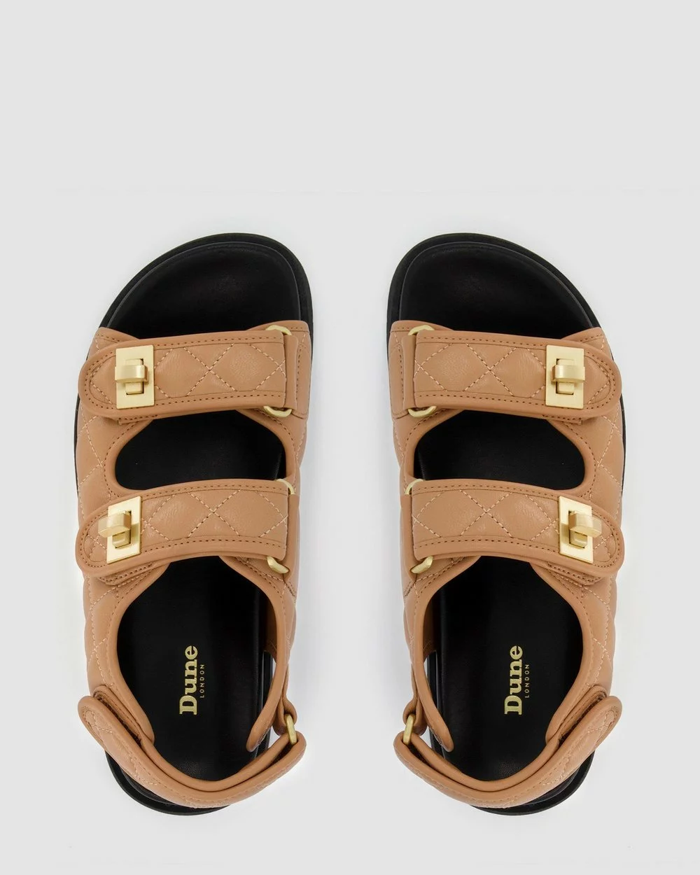 Dune London is a luxury English footwear and accessories brand, developed to crafting high quality, innovative pieces. The Dune London Lockstockk Sandal is a stylish update to the classic sandal. Showcasing a textured upper with double straps and turnlock closures. The comfy ergonomic sole and open toe complete the chic design.