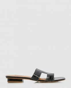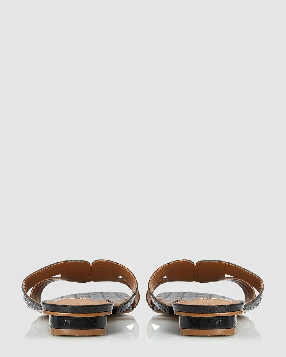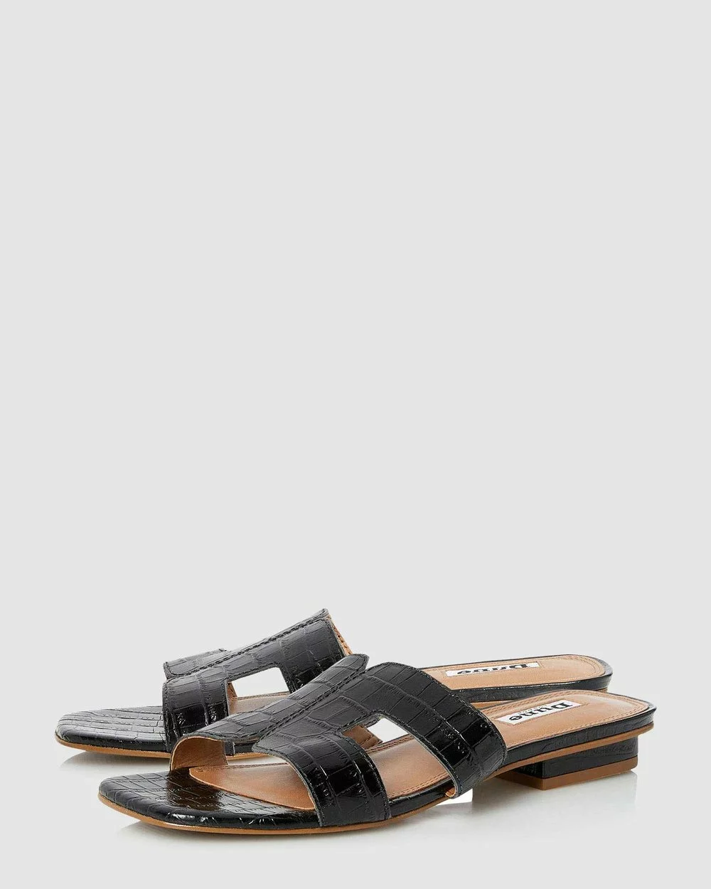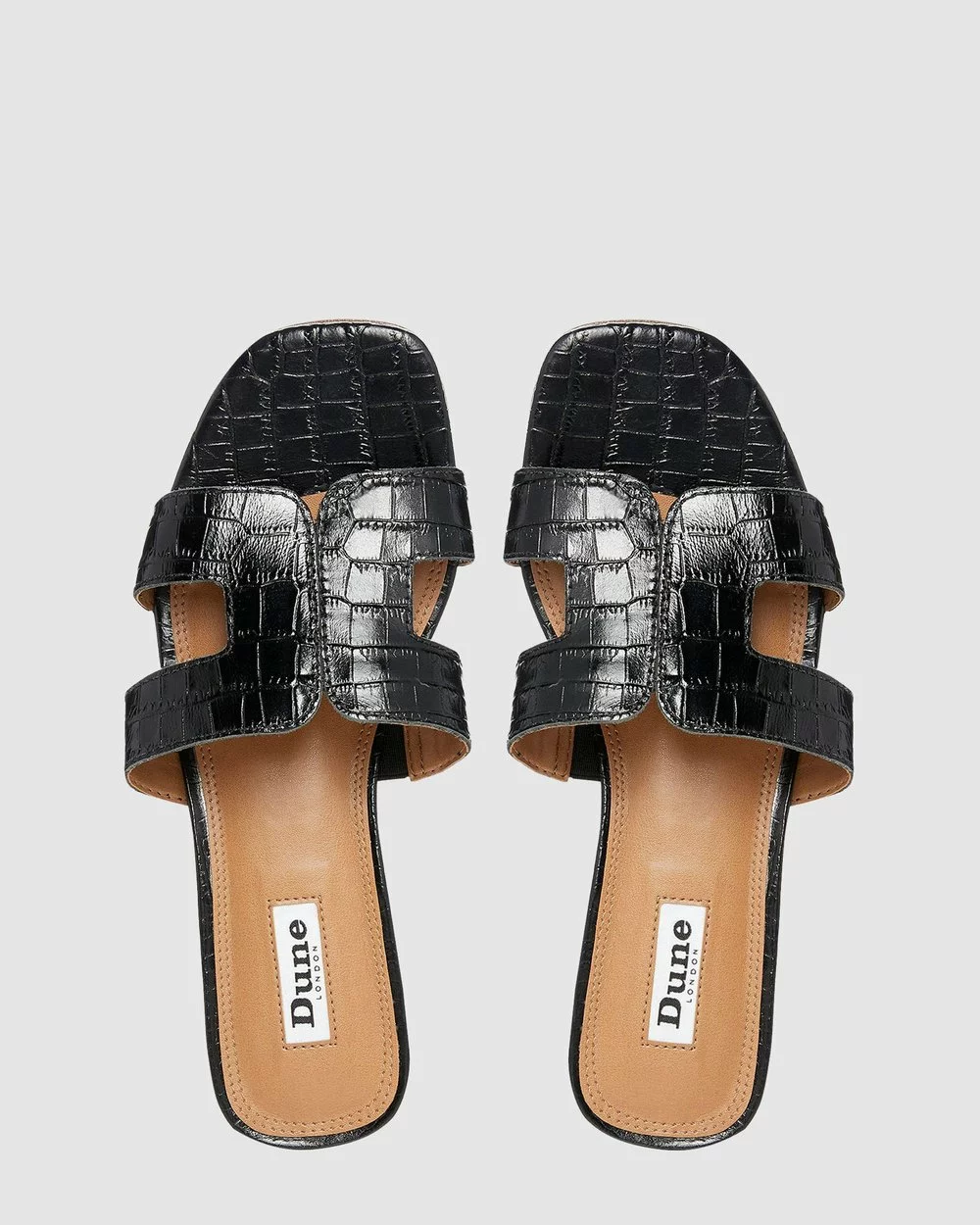 At Dune London, we are the footwear and accessory specialists, but it's you that brings them to life. We're London born, globally worn. The Dune London Loupe Slide features a cut out design with contrast stitching. It sits on a low block heel with an open toe design.