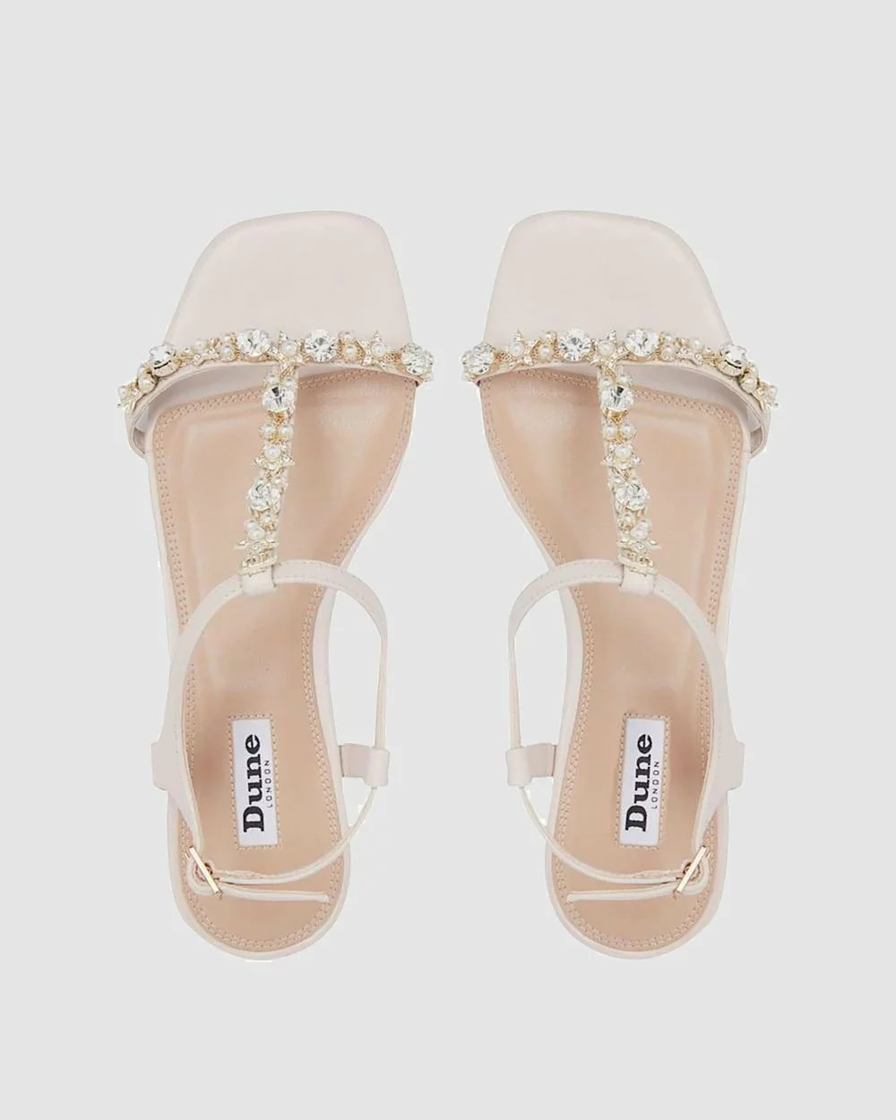 Dune London is a luxury English footwear and accessories brand, devoted to crafting high quality, innovative pieces. The Dune London Nasa Sandal features diamante detailing, with a T-bar shape and buckle fastening.