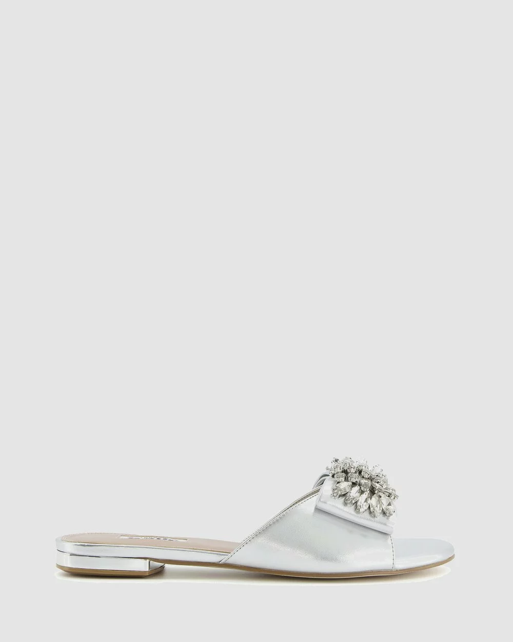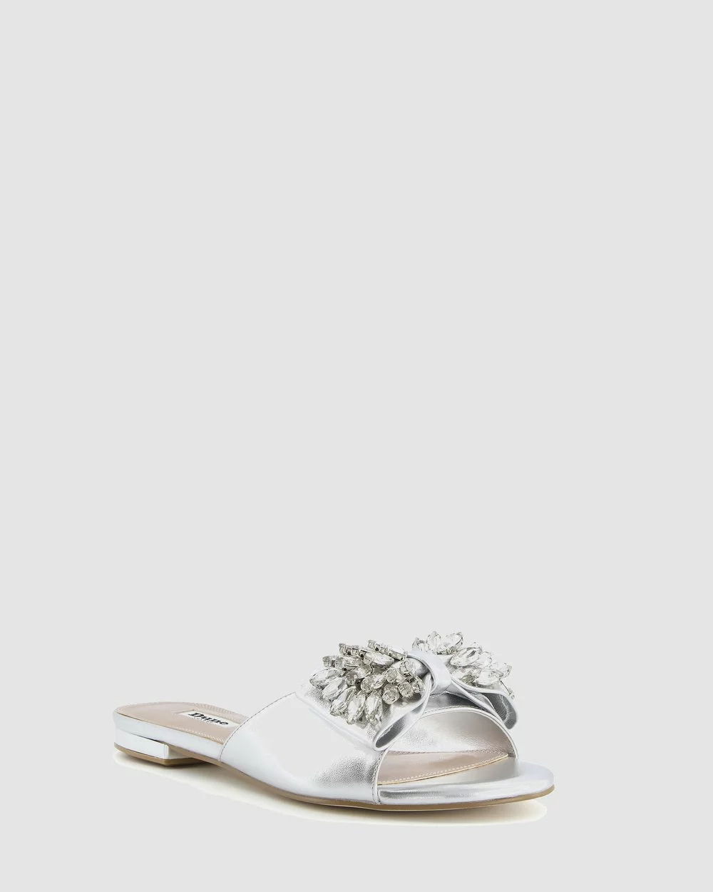 Dune London is a luxury English footwear and accessories brand, devoted to crafting high quality, innovative pieces. The Dune London Nomi Di Sandals have a stylish vintage feel. These butterfly embellished mules will add a touch of timeless elegance to any look. Resting on a low metallic heel these are a wardrobe essential that will take an outfit effortlessly from day to evening.
