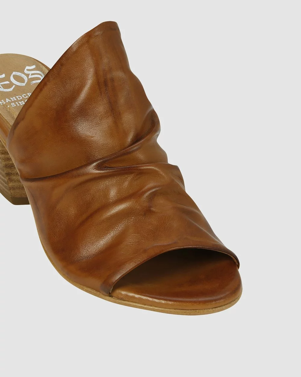 – Rushed leather – Block heel & Padded insole – Brown leather mules – Mid-low heels