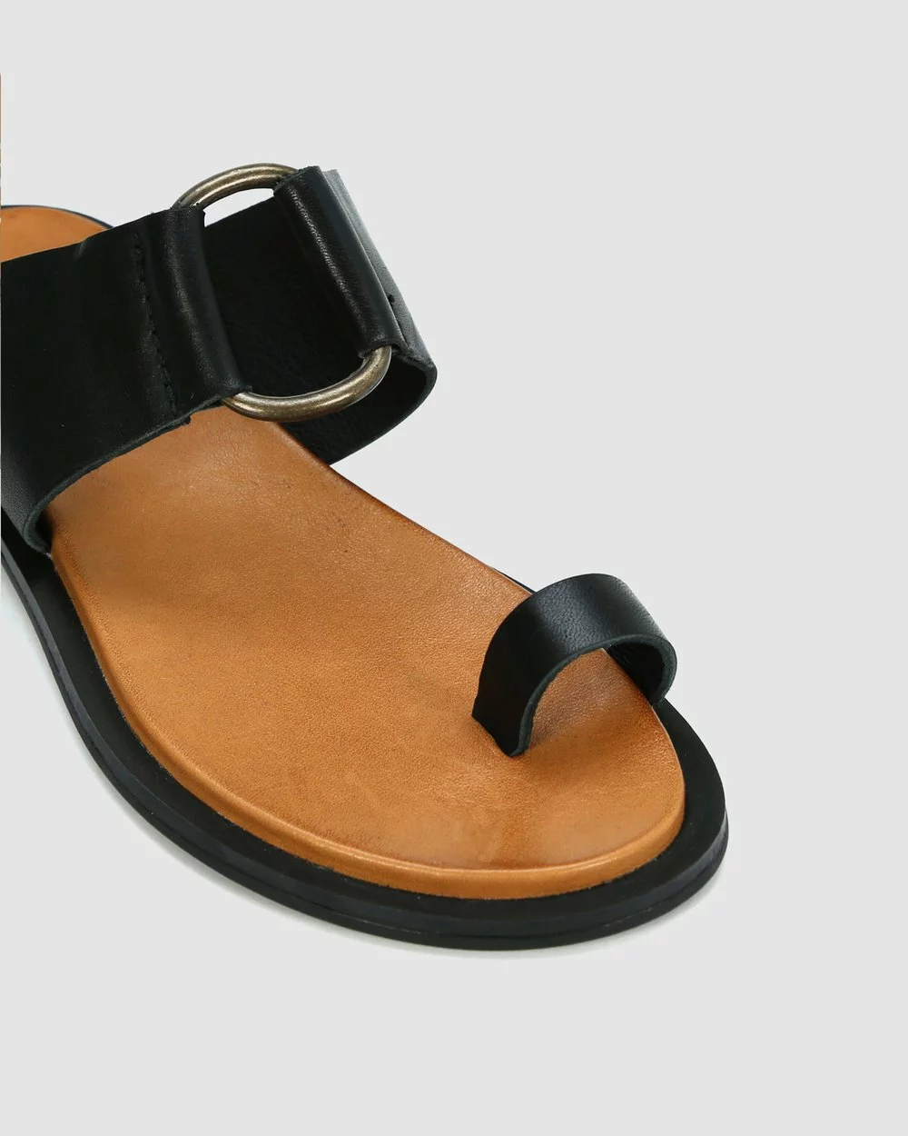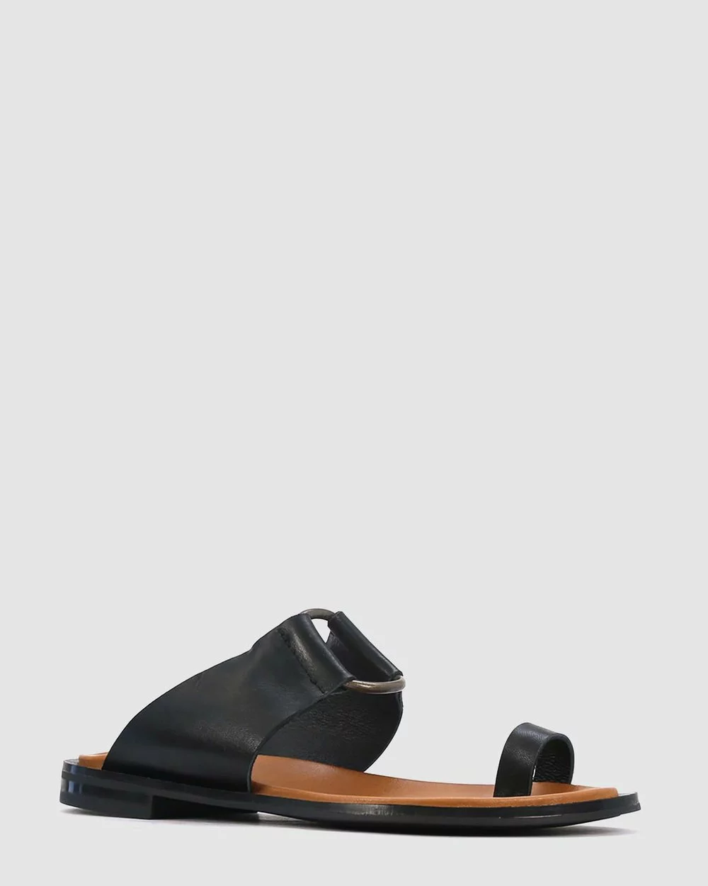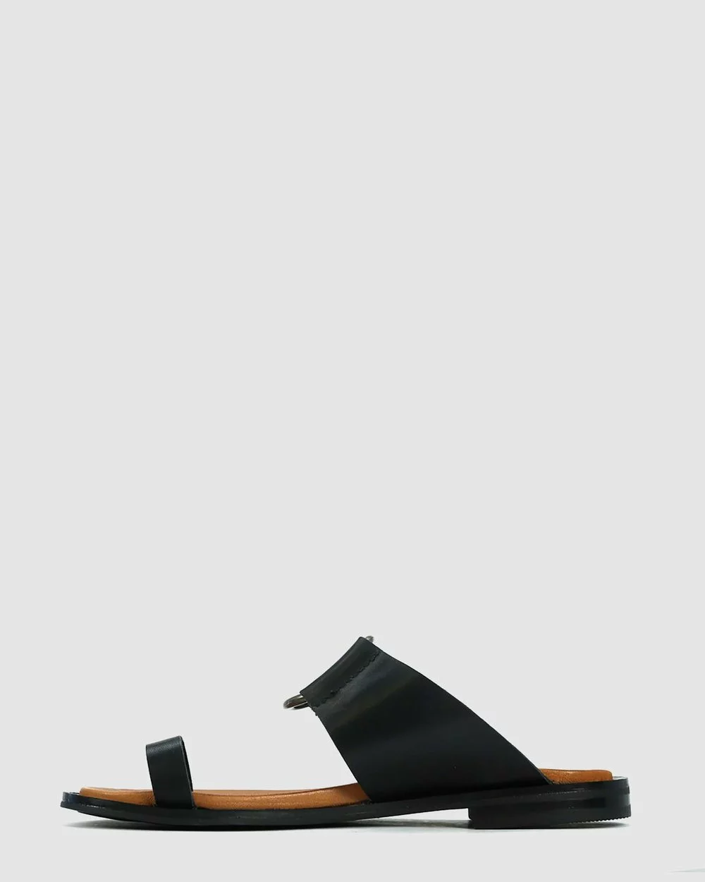– Handmade Portuguese shoes – Easy to wear summer slides – Pure leather softness – Twin strap slide design – Black leather thong – Feature buckle – Flexible outsole