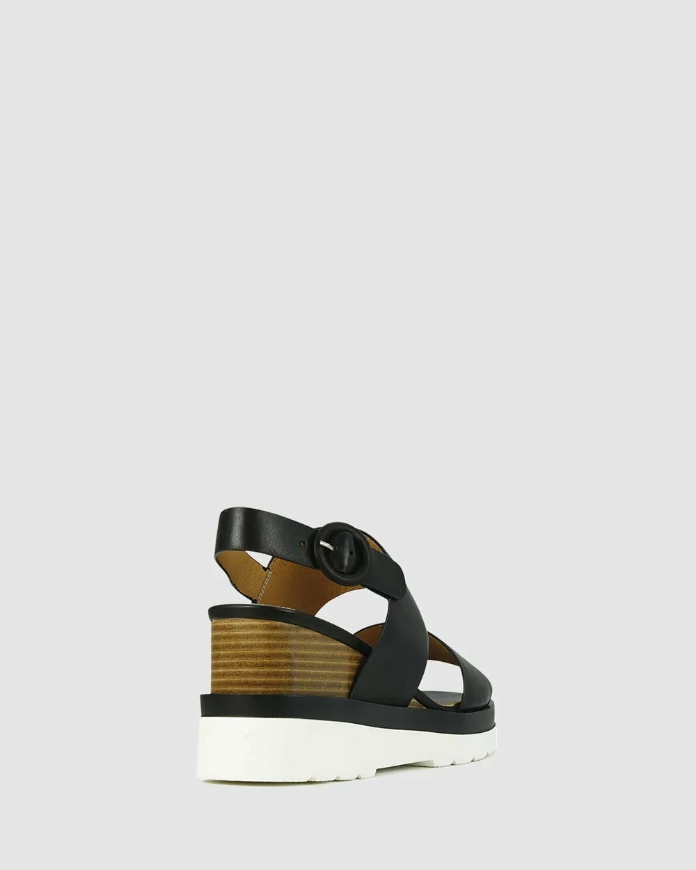 – Twin-strap sandal – Leather footbed- Leather stack wedge- Leather buckle – Adjustable buckle ankle-strap- Two-colour outsole
