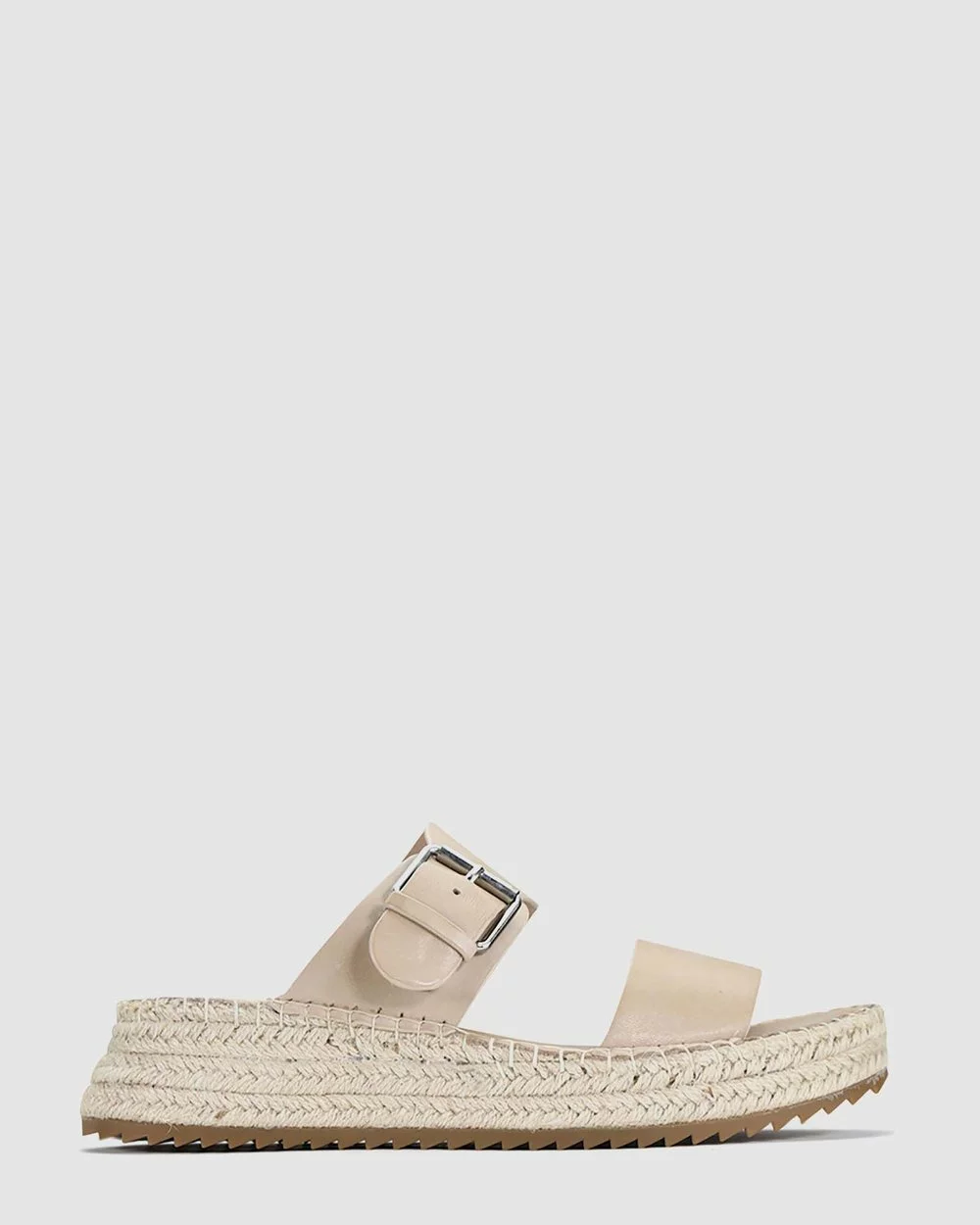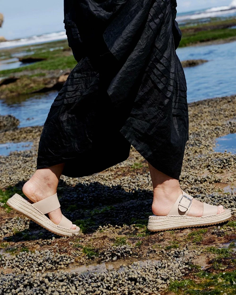 – Sporty Espadrille sandal – Dual strap slides – Upper made from soft cashmere and 100% aniline full-grain calf leather – Rope wrapped footbed