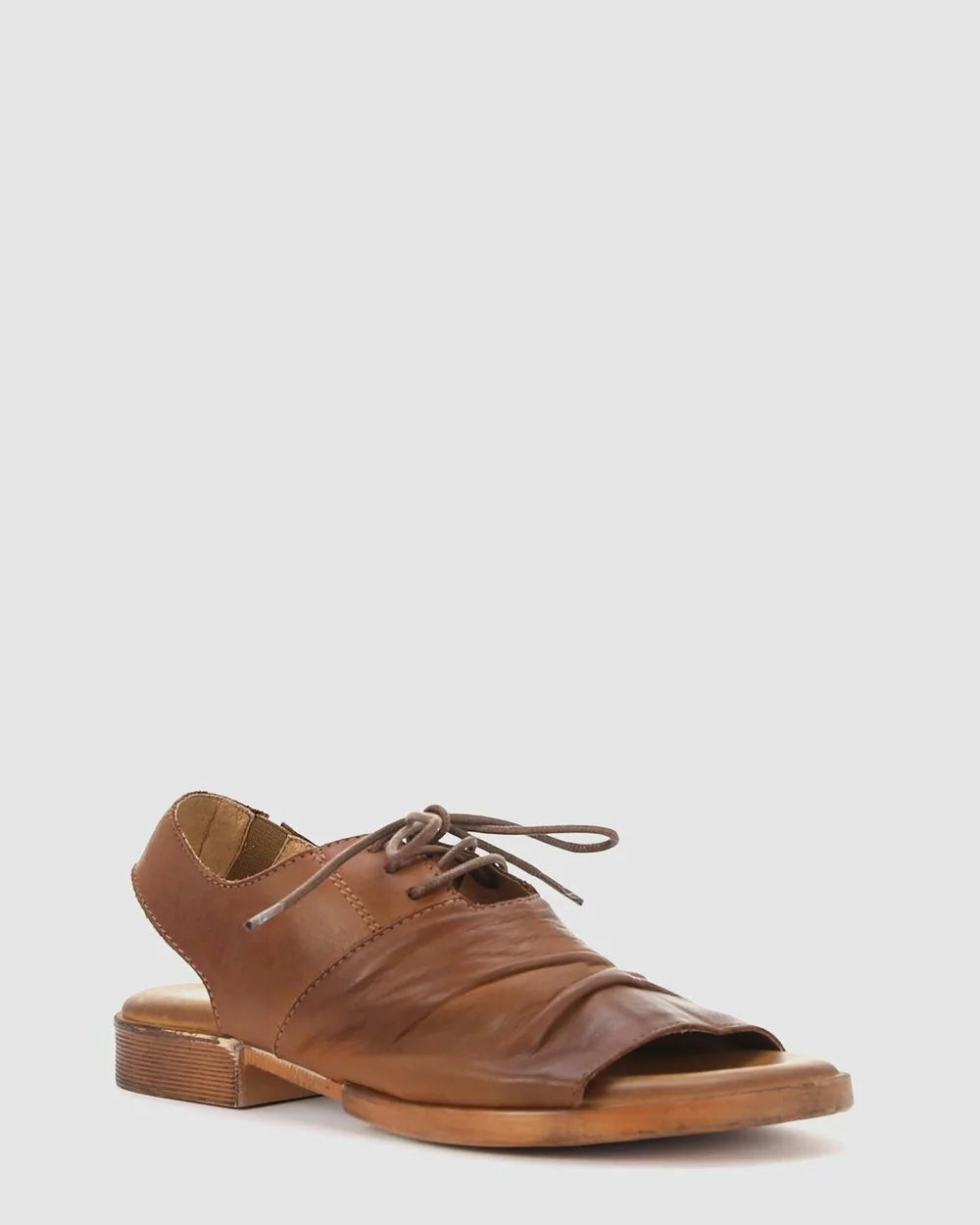 This stunning lace-up sandal by Eos is a classic. Featuring soft leather rouching and an elastic reinforced back, the Liddy is the perfect pair to add to your growing wardrobe. Constructed in Portugal, Eos has kept the timeless and lasting design in mind with the pair’s newly-developed outsole. The sister sandal to the Lion, this shoe also features a cushioned footbed that offers long-lasting enjoyment and support.