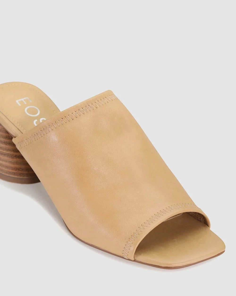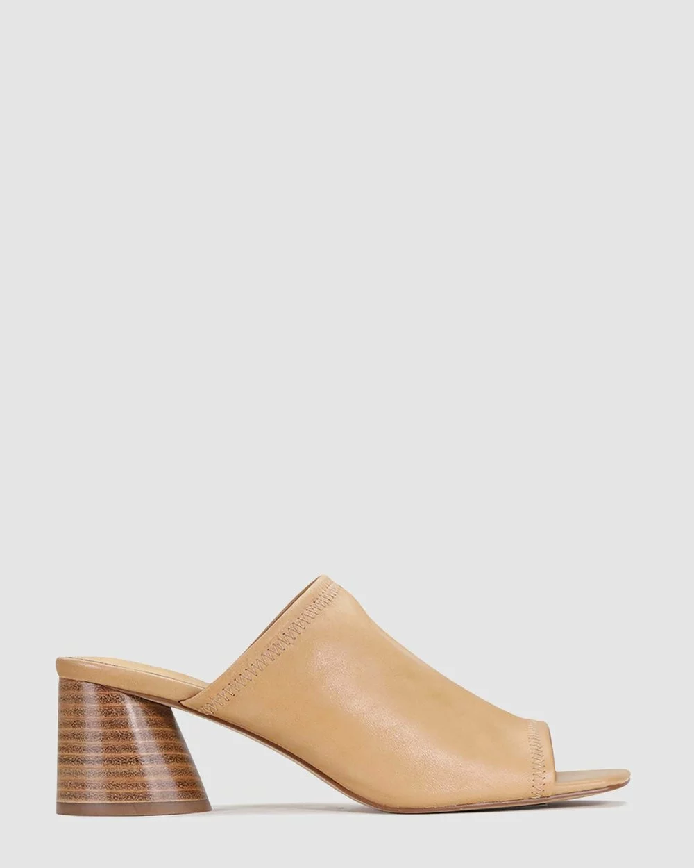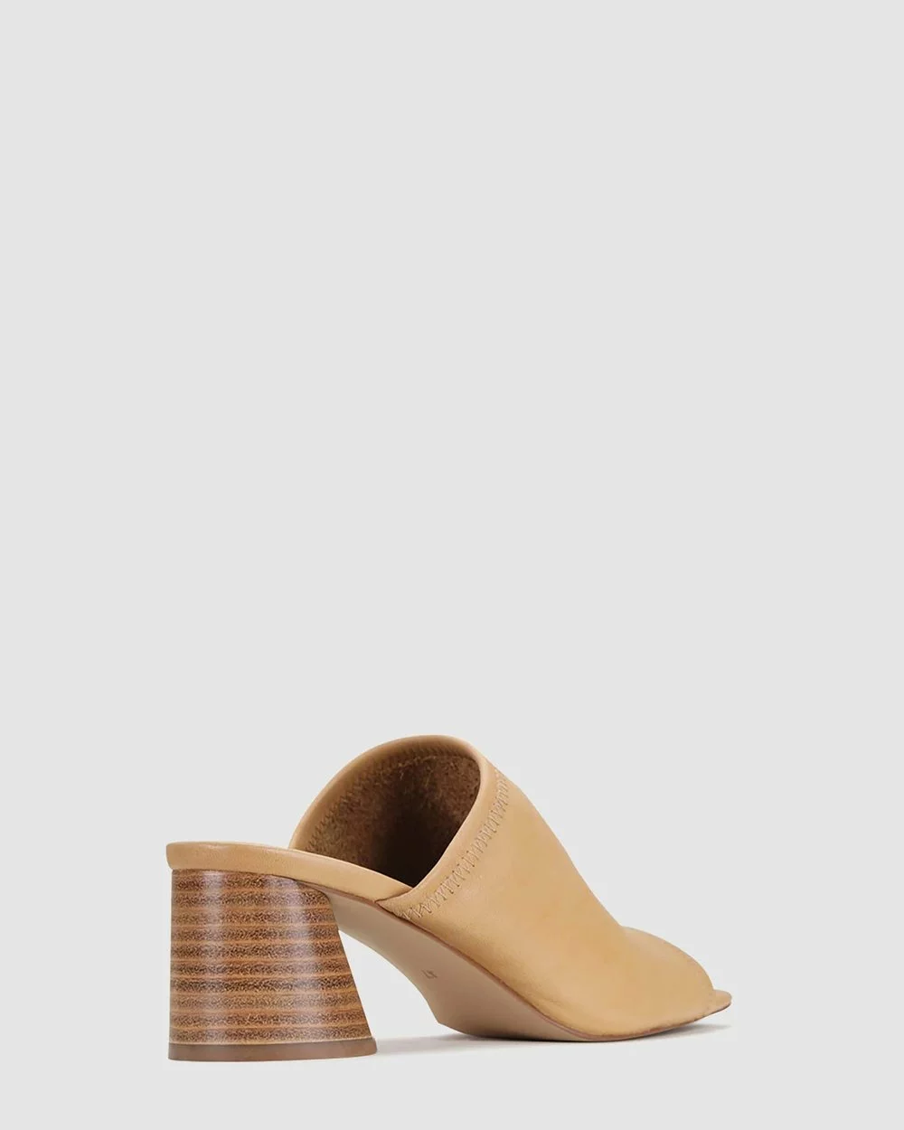 – Italian leather Classic design – Minimal and chic Stacked – Leather heel slides- Tan Shade